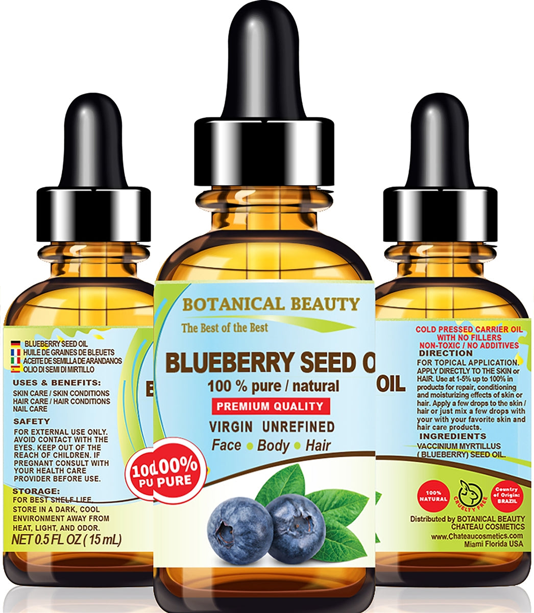 El aceite de semilla de arándano de Botanical Beauty es un aceite portador 100 % puro, natural, virgen, sin refinar, prensado en frío, de primera calidad para el rostro, la piel, el cabello, los labios, el cuerpo y las uñas.