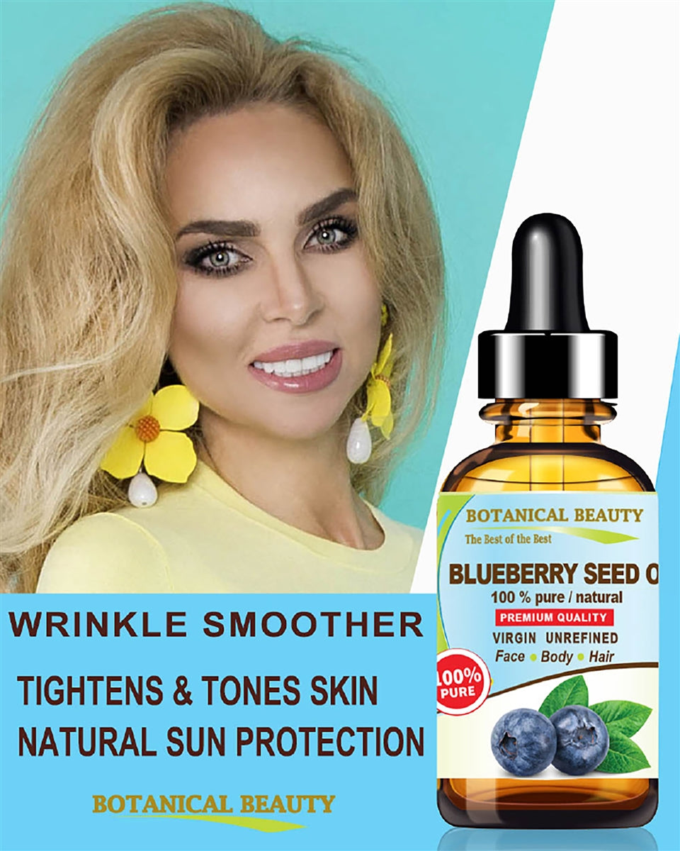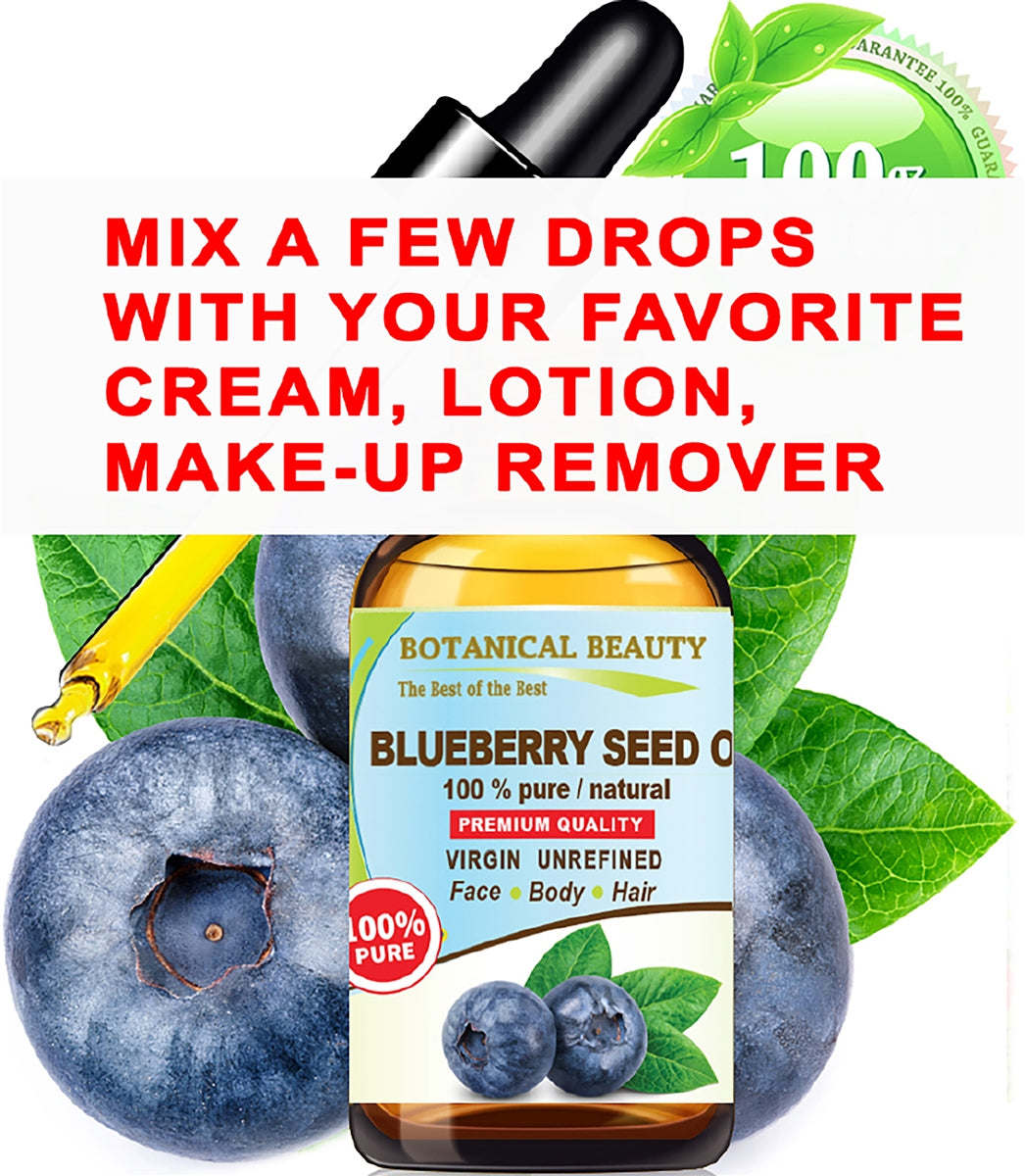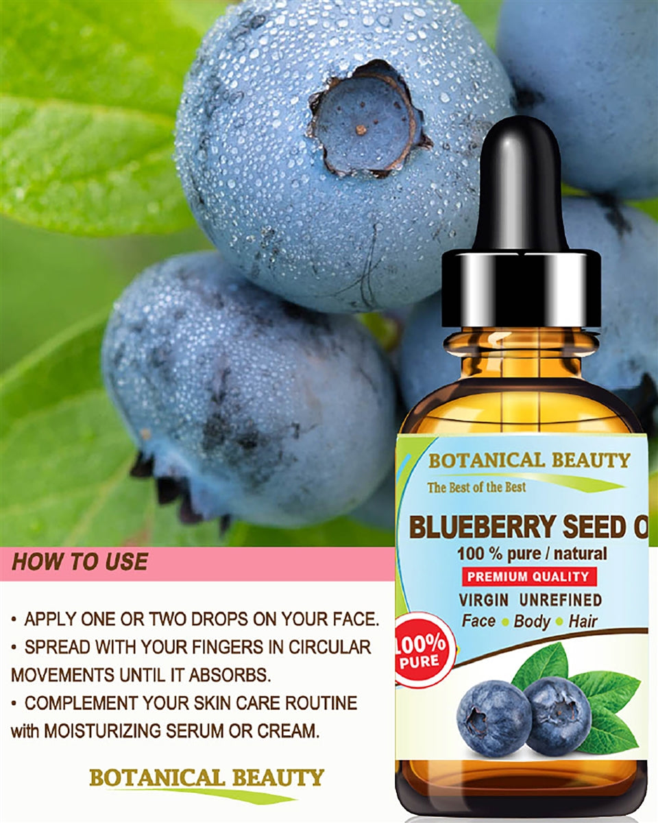 - El ACEITE DE SEMILLA DE ARÁNDANOS Vaccinium Myrtillus de Botanical Beauty es 100 % puro, natural, sin refinar, VIRGEN, prensado en frío, crudo, sin aditivos. Tiene un alto contenido de ácido linoleico y también contiene ácido alfa-linolénico, ácido oleico, vitamina C, vitamina E, complejo de vitamina B, omega 6 y omega 9, un humectante ligero ideal para uso diario.