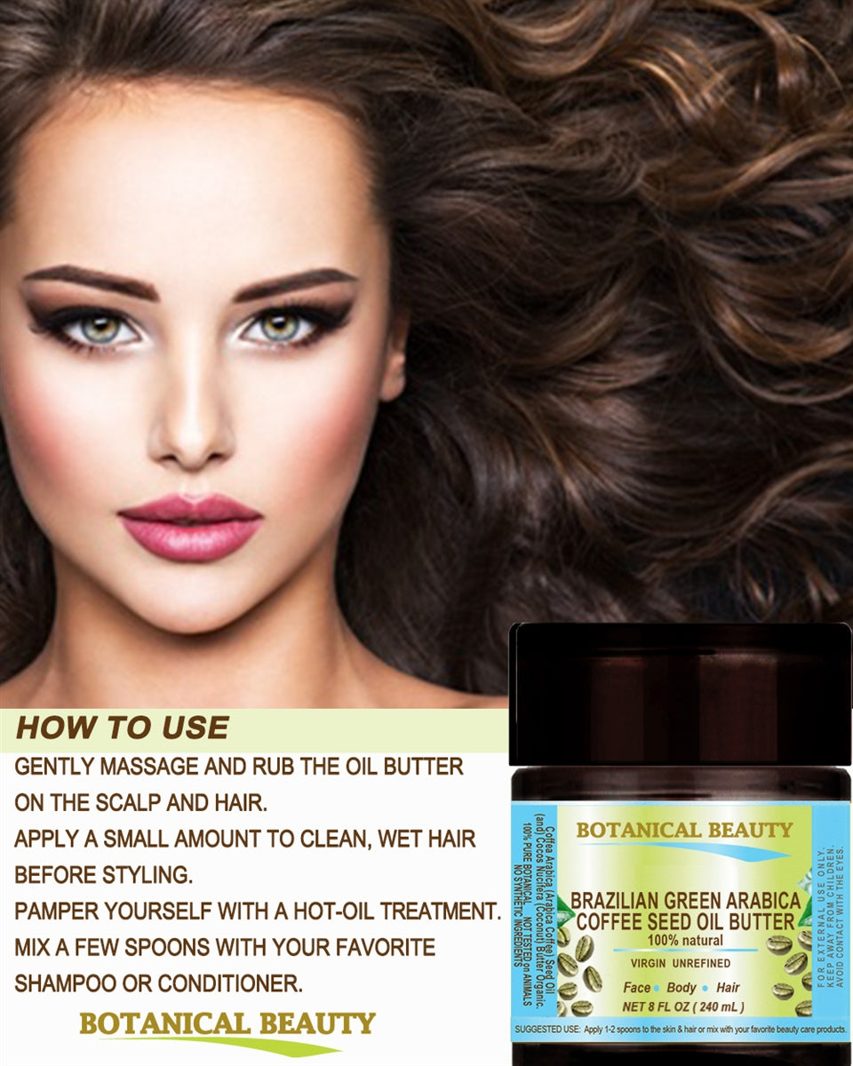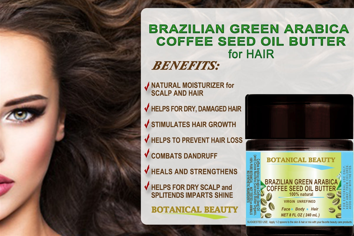 - La MANTEQUILLA DE ACEITE DE SEMILLA DE CAFÉ ARÁBICA VERDE BRASILEÑO ayuda con el CABELLO DAÑADO, el CUERO CABELLUDO SECO y las UÑAS QUEBRADIZAS.