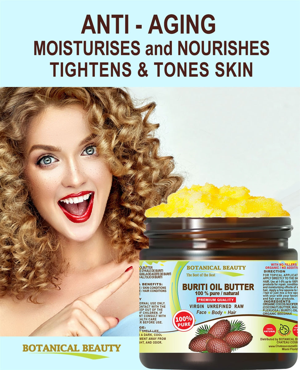 Mantequilla de aceite de burití Botanical Beauty 100 % pura, natural, de primera calidad, virgen sin refinar, cruda para rostro, cuerpo, cabello, labios y uñas.