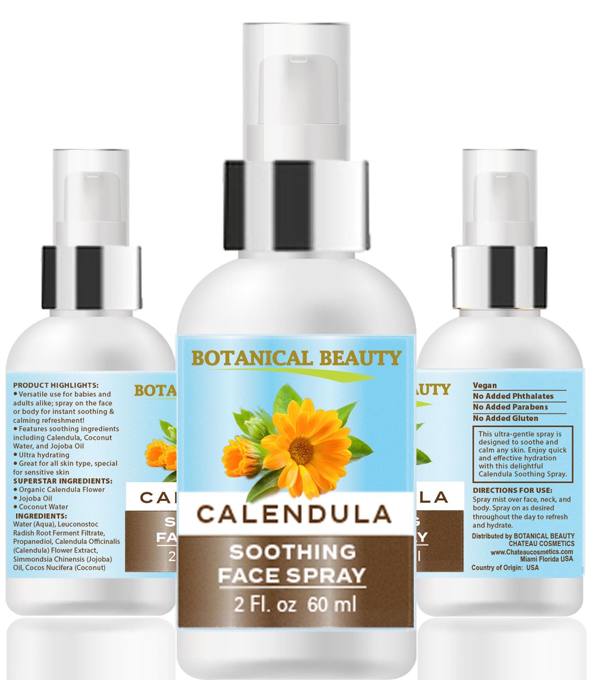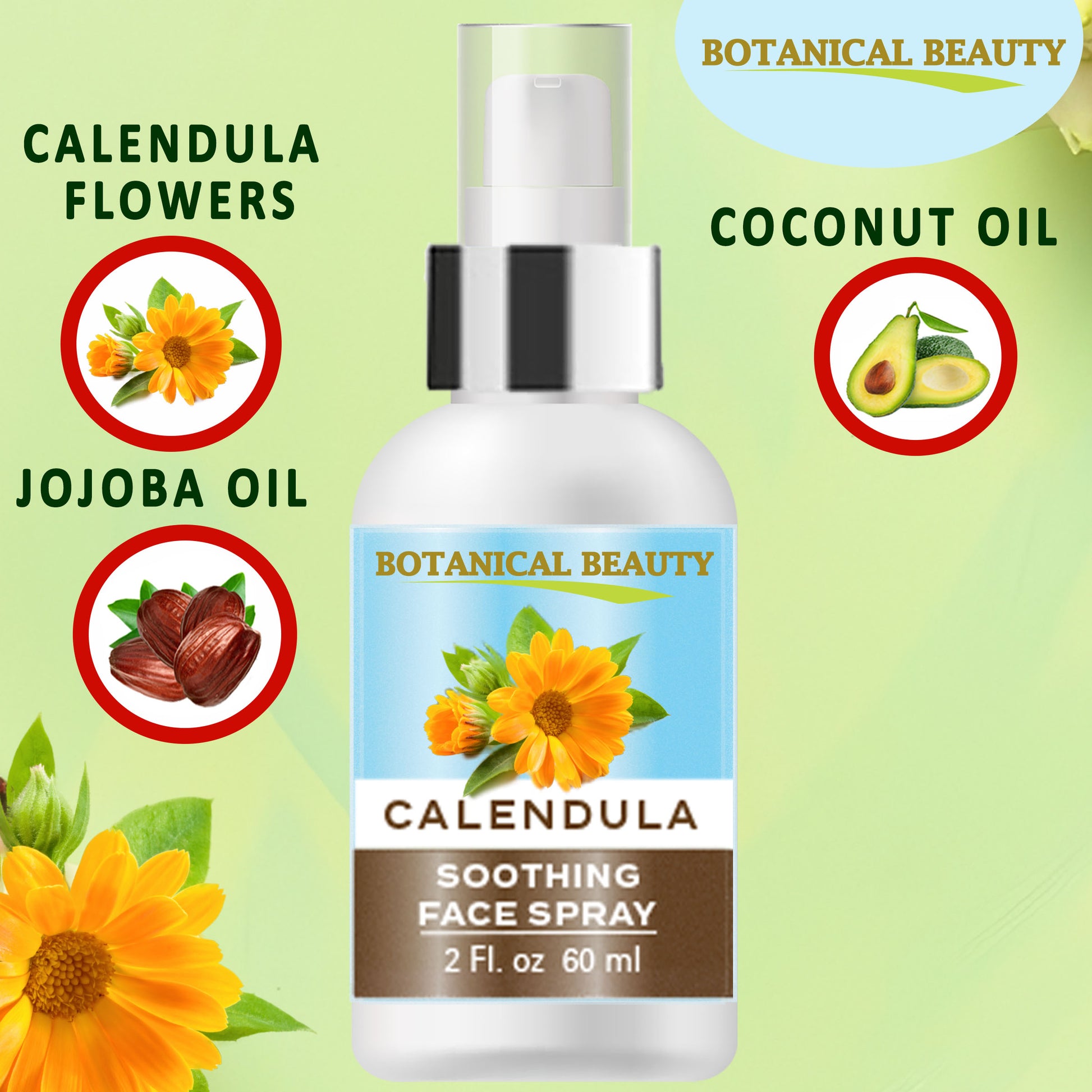 Spray facial calmante de caléndula Botanical Beauty 100 % natural para rostro, piel y cuerpo.