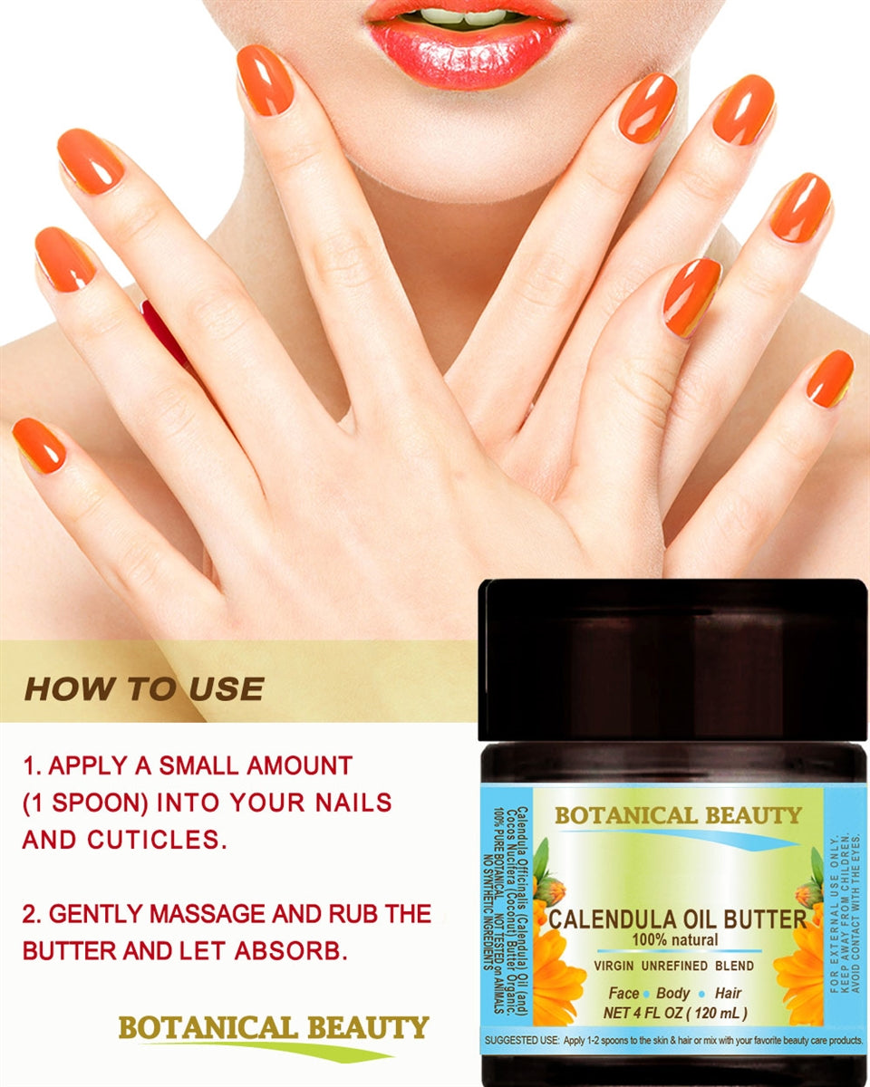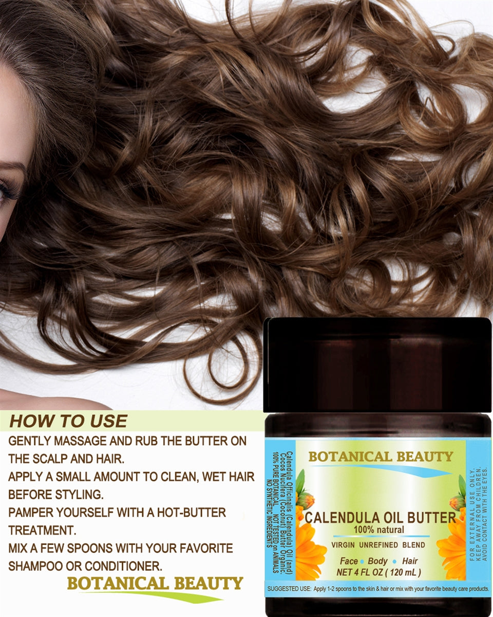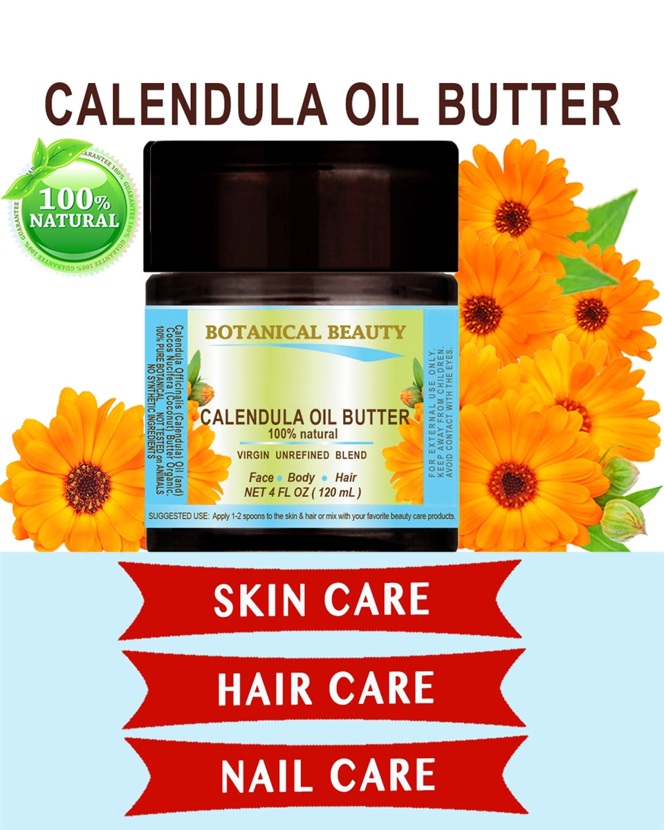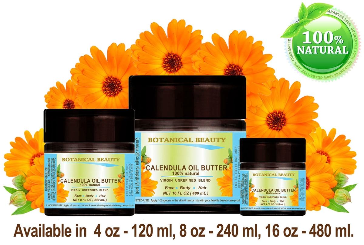 Manteca de aceite de caléndula Botanical Beauty 100% pura natural para piel, rostro, cabello, labios y uñas.