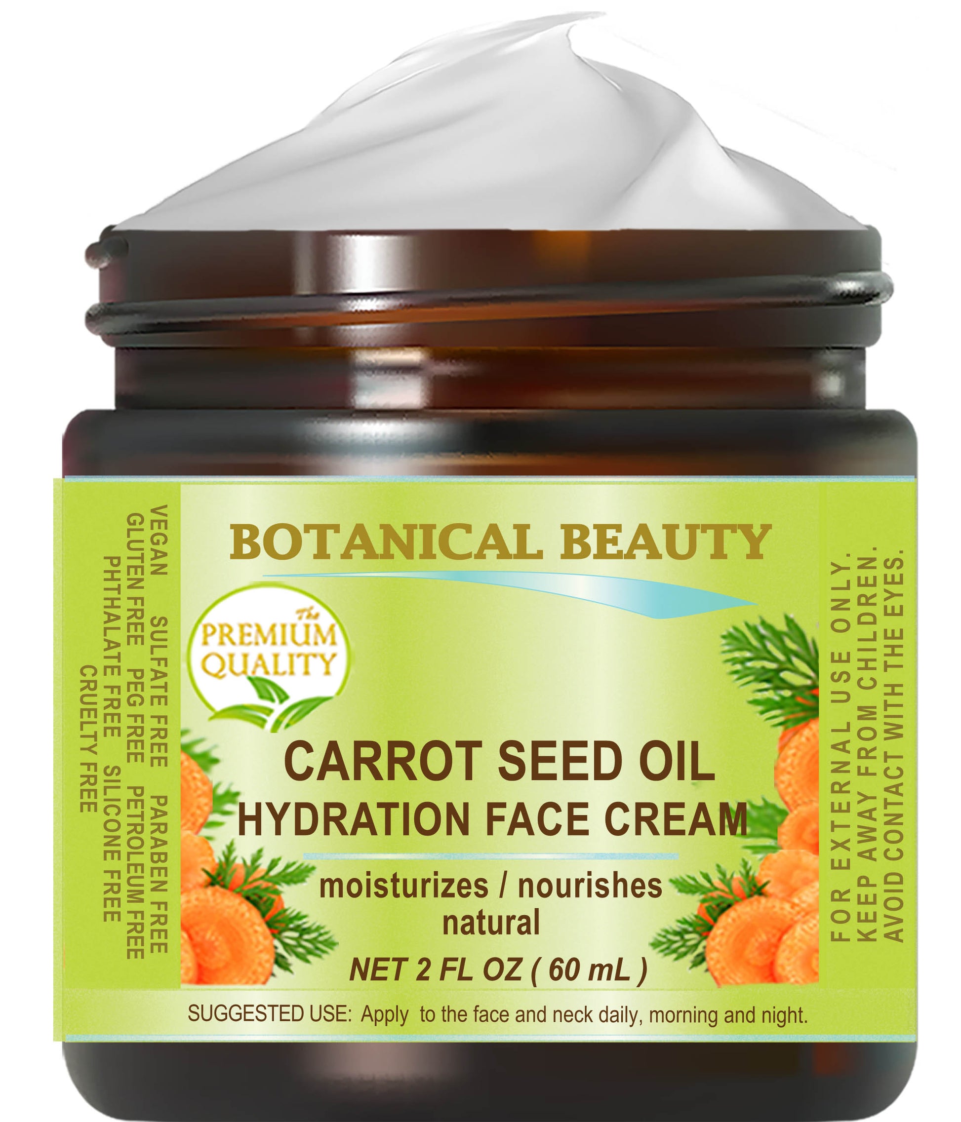 Crema facial hidratante con aceite de semilla de zanahoria Botanical Beauty, para piel normal, seca y sensible, para rostro, piel, cuerpo, cabello, labios y uñas.