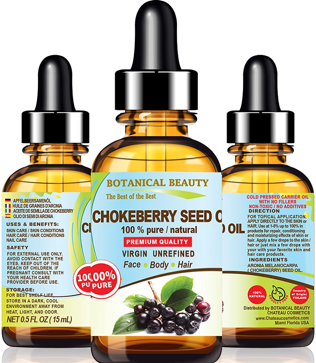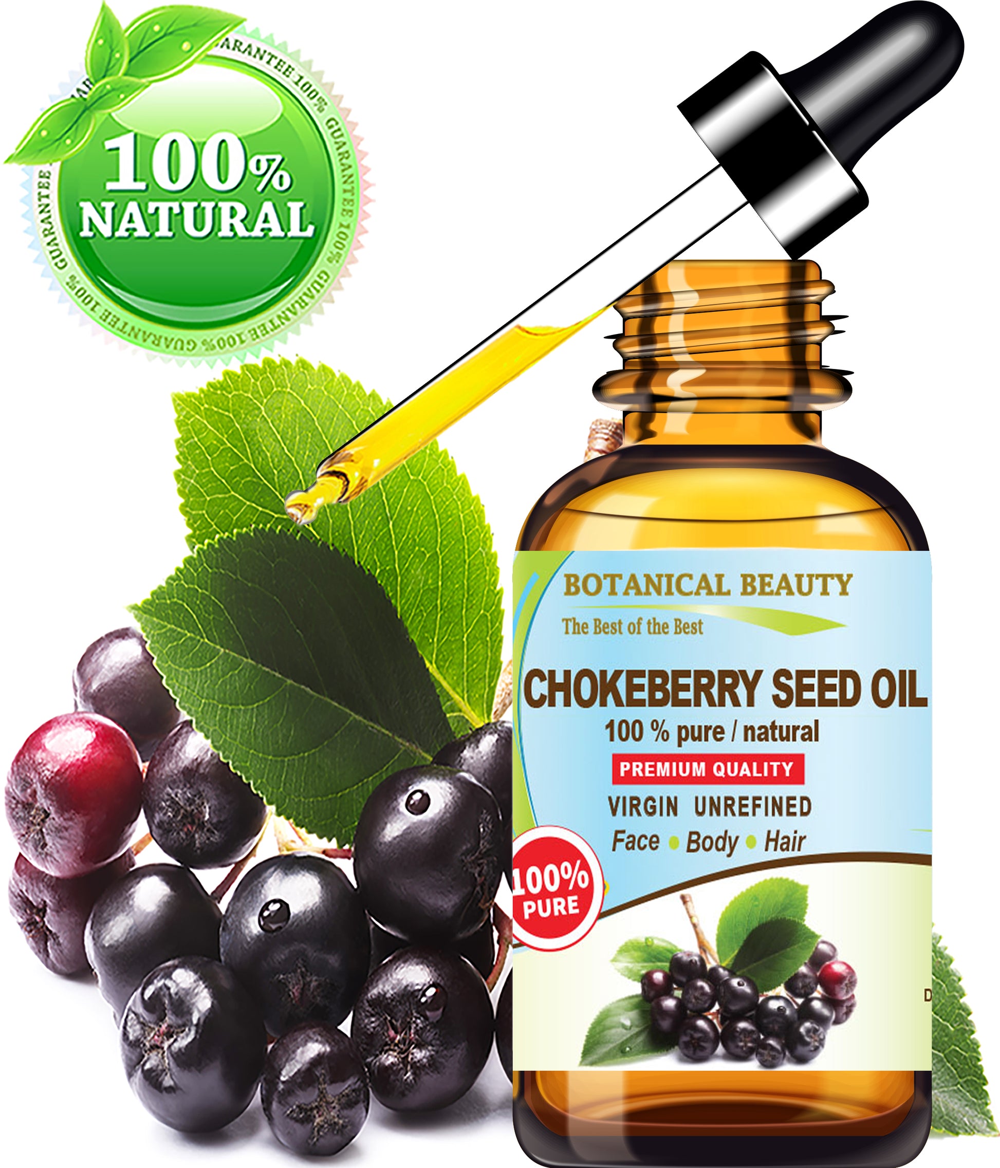 Aceite de semilla de chokeberry Botanical Beauty 100 % puro, natural, de primera calidad, virgen sin refinar para rostro, piel, cuerpo, cabello, labios y uñas.