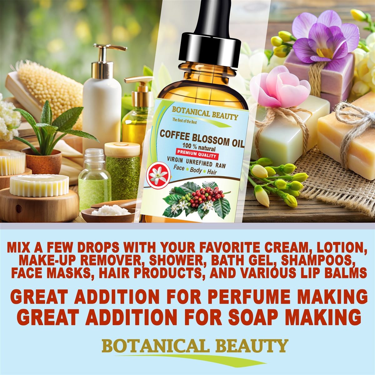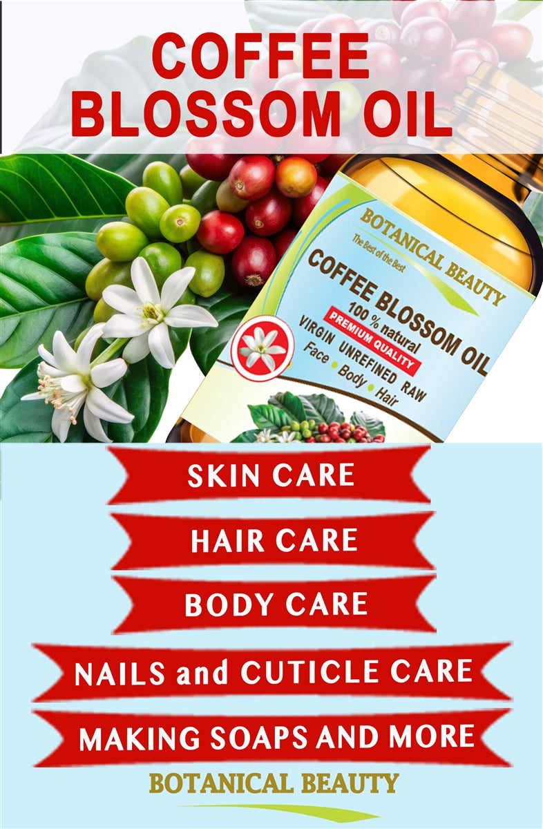 ACEITE DE FLOR DE CAFÉ 100 % natural de Botanical Beauty. Aceite esencial de café para ROSTRO, PIEL, CUERPO, CABELLO, UÑAS. Aceite de belleza, aceite hidratante para la piel, aceite nutritivo para la piel, elaboración de perfumes, elaboración de jabones