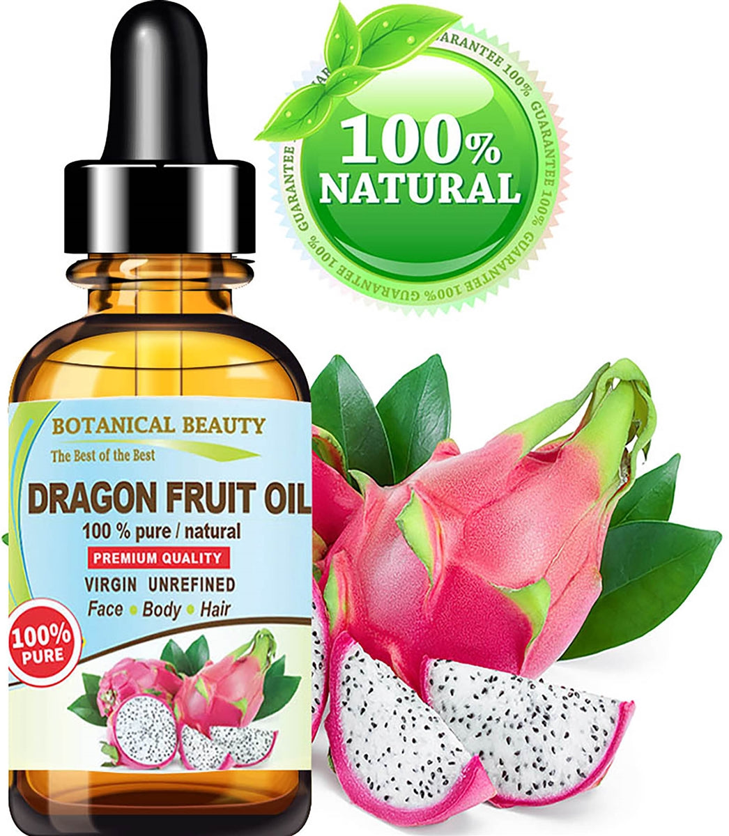 Aceite de fruta del dragón Botanical Beauty 100% puro natural de primera calidad, virgen extra sin refinar para rostro, piel, cuerpo, cabello, labios y uñas.