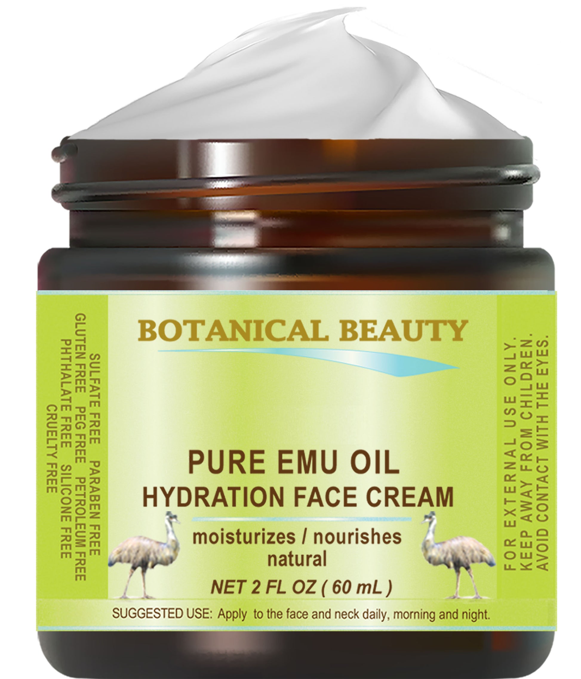 Crema facial hidratante con aceite de emú puro Botanical Beauty para pieles normales, secas y sensibles, para rostro, piel, labios, cabello y uñas.