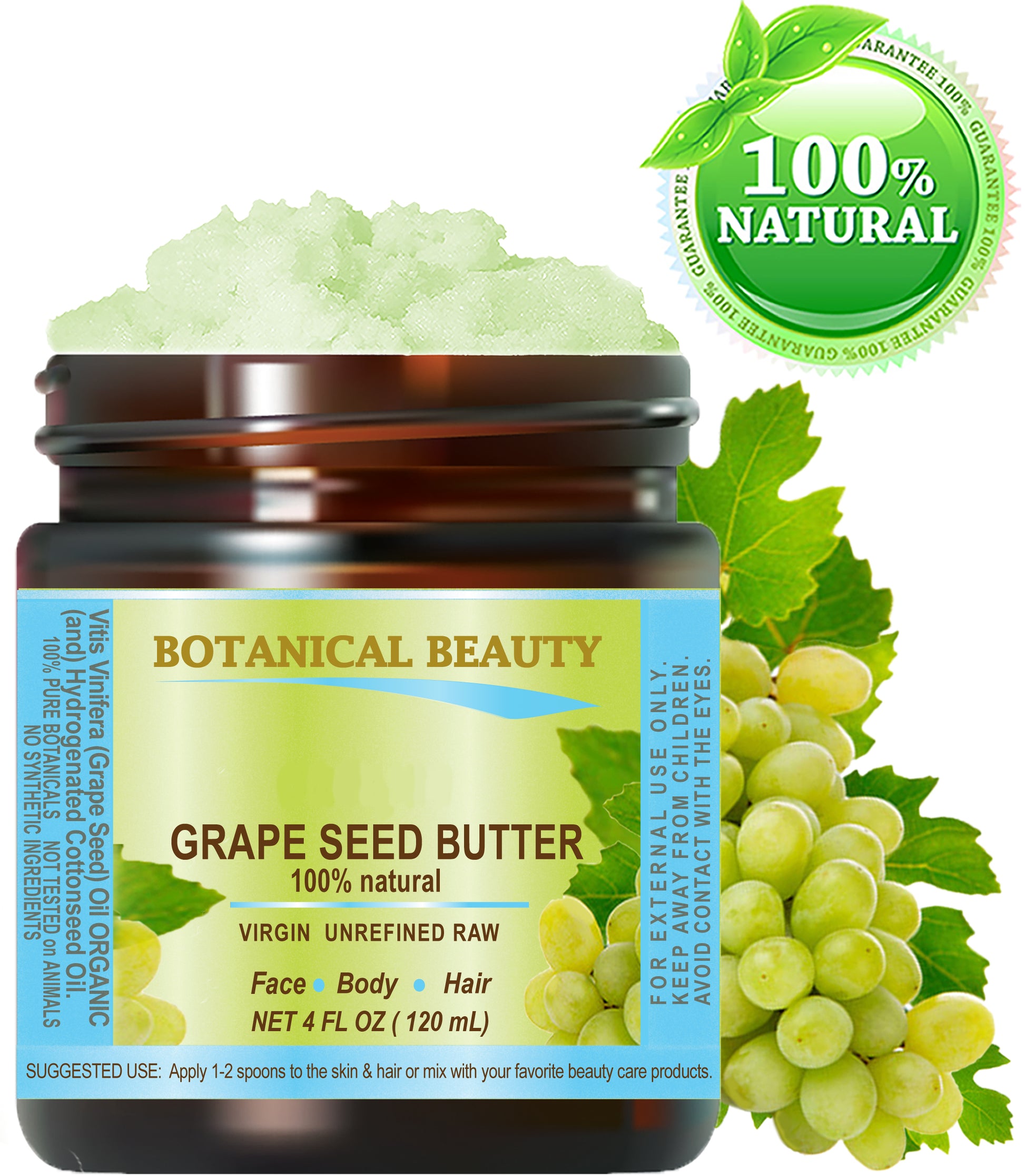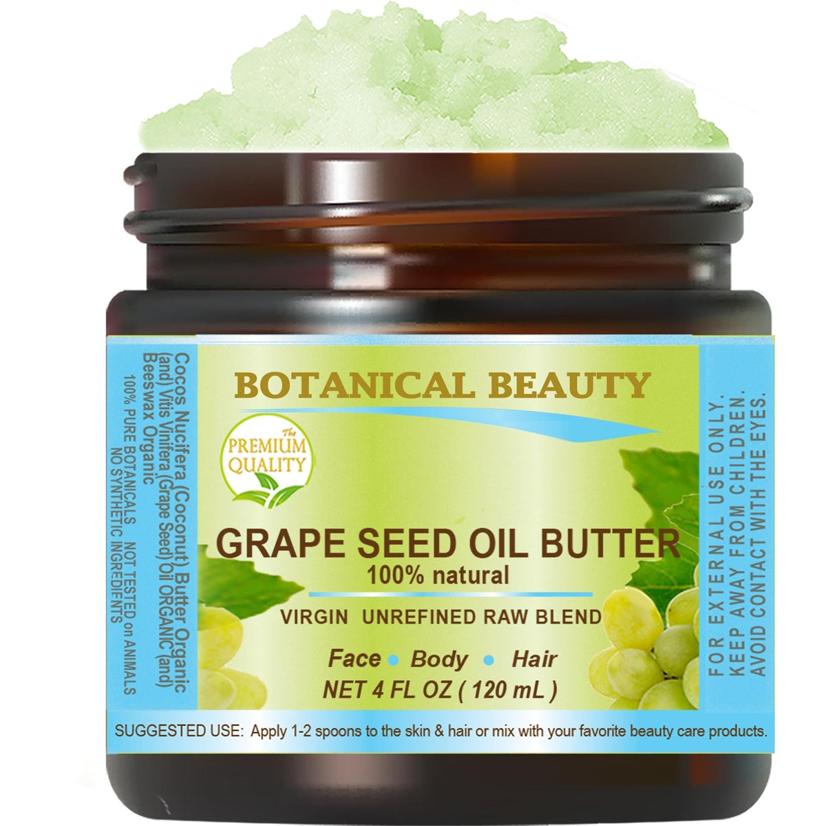 Mantequilla de aceite de semilla de uva Botanical Beauty CRUDA 100% Natural VIRGEN SIN REFINAR 100% PURO BOTÁNICO para rostro, piel, cabello, labios y uñas.