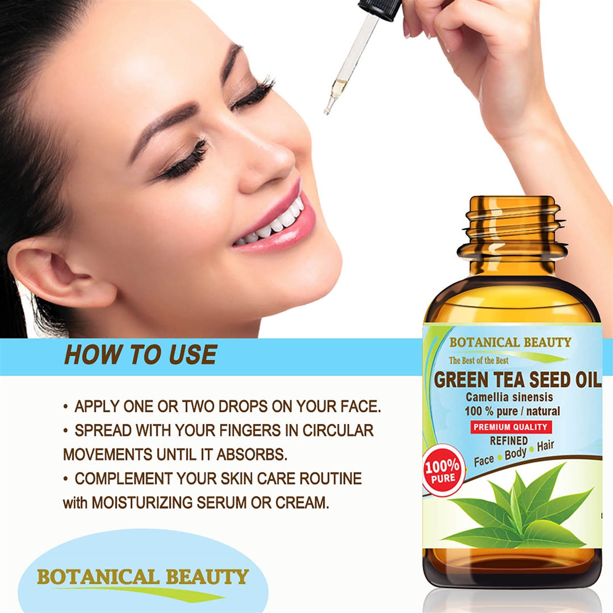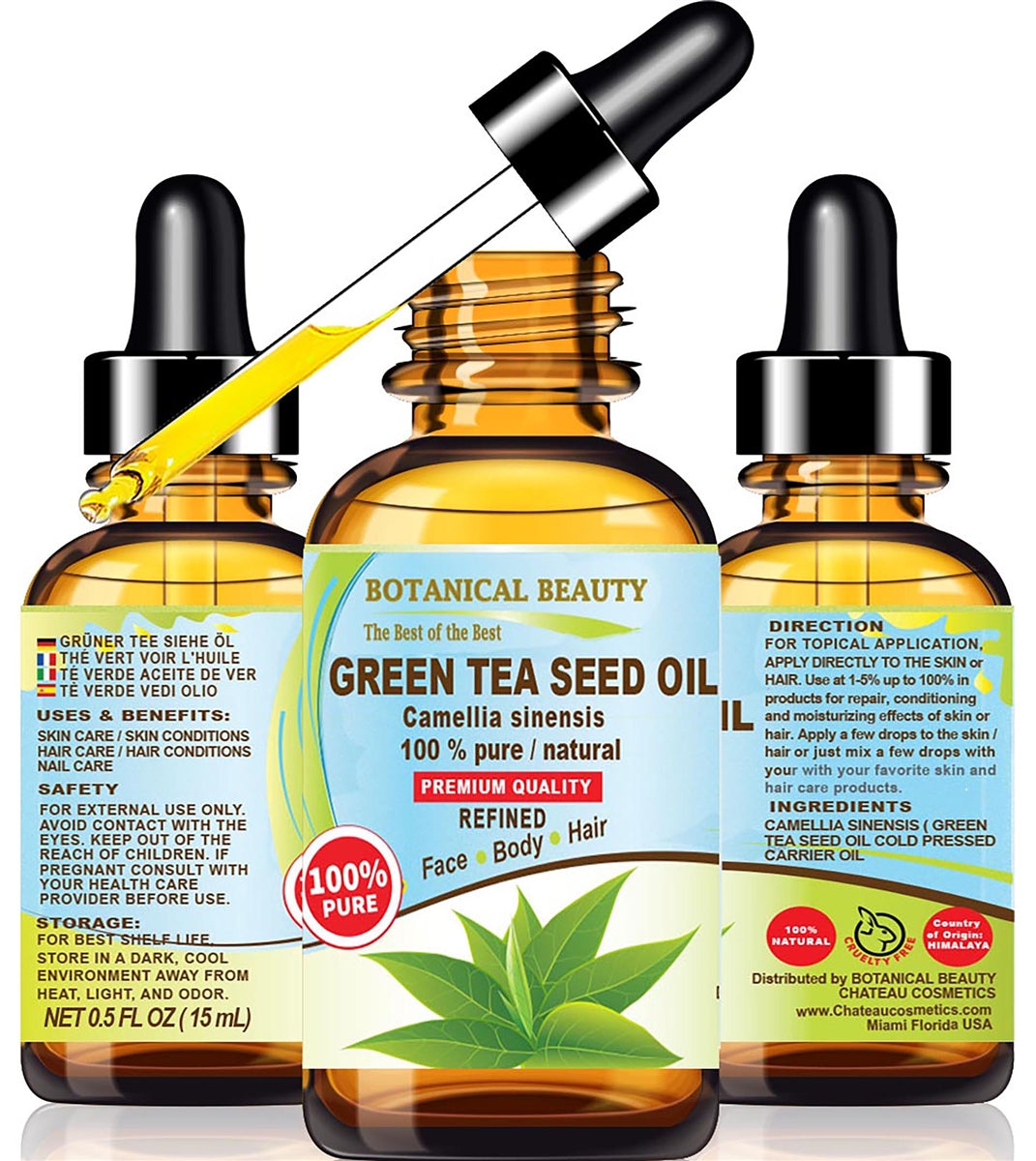 Aceite de semilla de té verde Botanical Beauty 100% puro natural de primera calidad VIRGEN SIN REFINAR para el cuidado de la piel, el rostro, el cabello, los labios y las uñas.