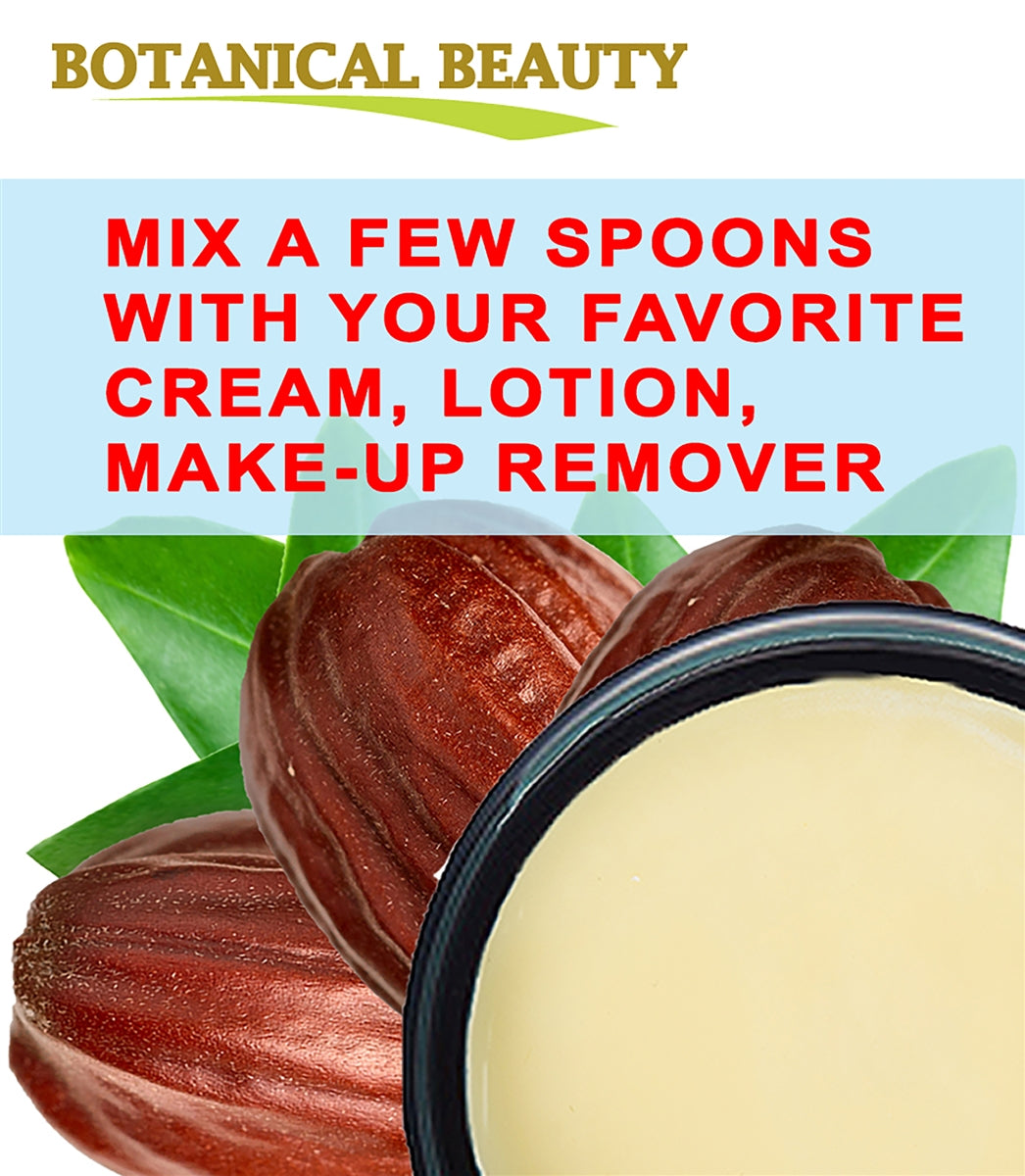 - La MANTECA DE JOJOBA de Botanical Beauty es 100 % natural, VIRGEN CRUDA SIN REFINAR, sin aditivos ni solventes sintéticos. Sin rellenos, aditivos ni fragancias artificiales añadidos. No obstruye los poros. No se ha probado en animales, NO CONTIENE CONSERVANTES. No es comedogénico.