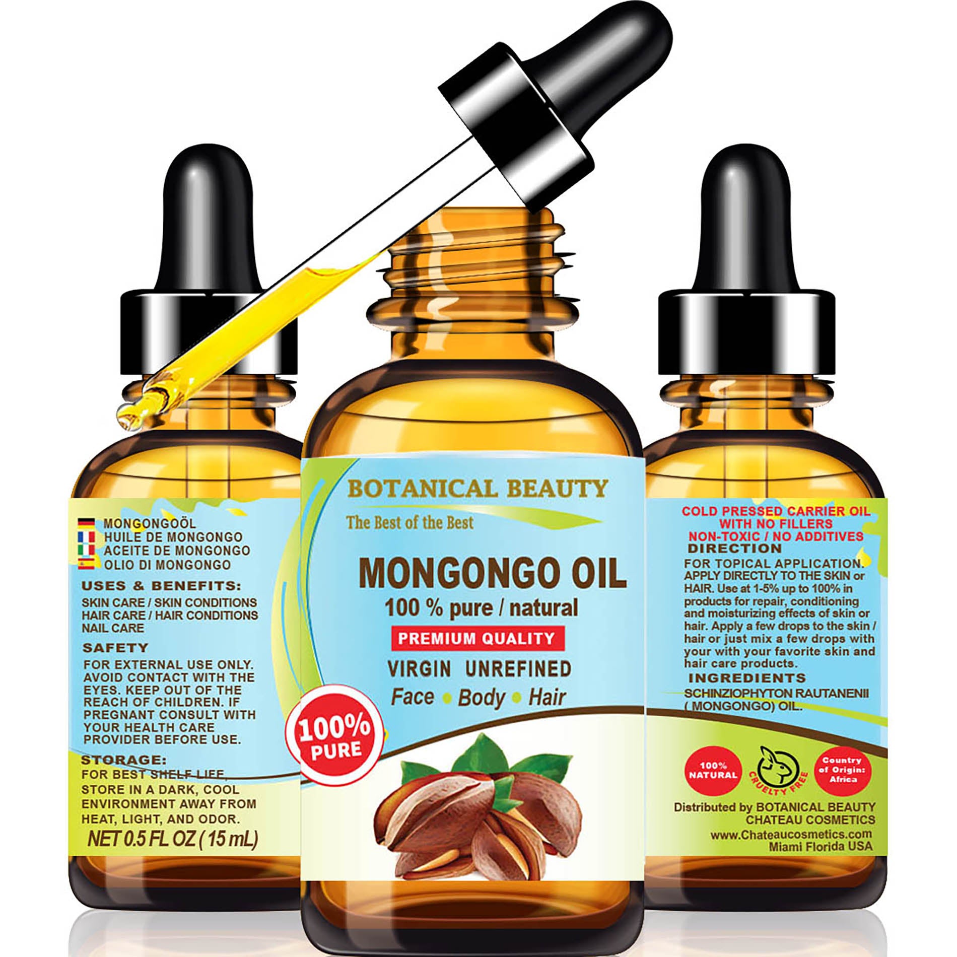 Aceite de Mongongo orgánico certificado por Botanical Beauty, aceite portador natural prensado en frío, sin refinar, sin diluir, para rostro, piel, cuerpo, cabello, labios y uñas.