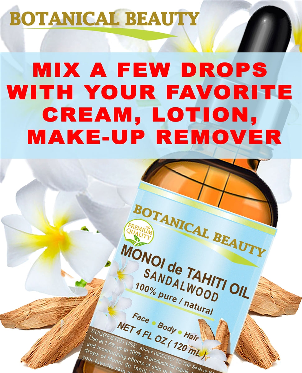 - ACEITE DE MONOI DE TAHITÍ DE SÁNDALO es un aceite extraordinario para el cuidado de la piel, el cuerpo y el cabello. Penetra e hidrata la piel rápidamente y reduce la pérdida de agua transepidérmica.