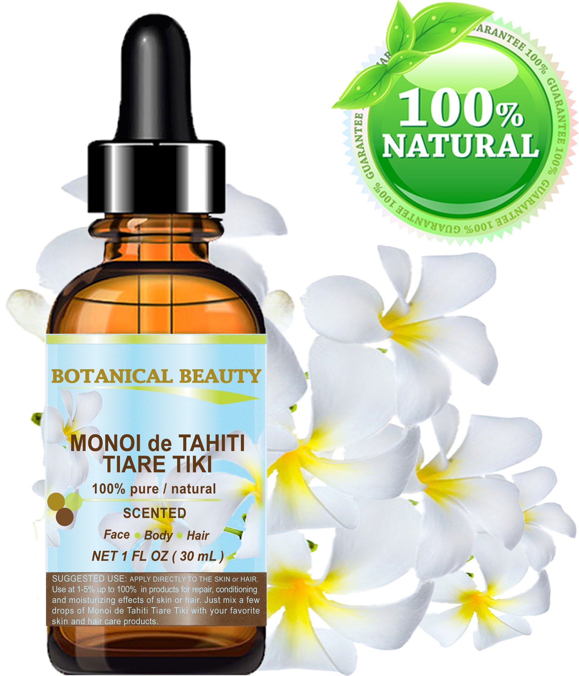 Botanical Beauty Monoi de Tahití Tiare Tiki Oil 100% Natural Polinesia Original Garantía para Rostro, Piel, Cuerpo, Cabello, Labios y Uñas.