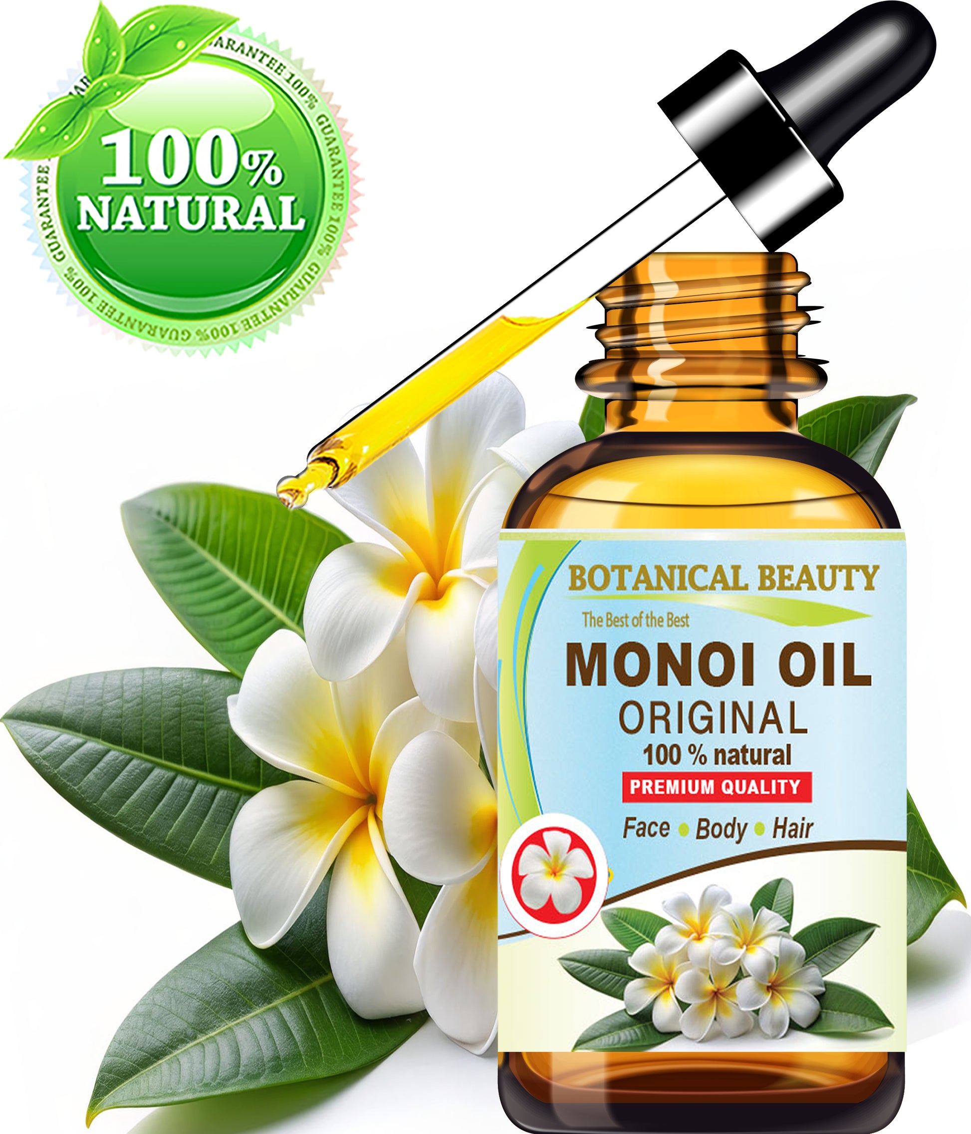 - Botanical Beauty MONOI OIL Original se considera uno de los aceites más extraordinarios para el rostro, la piel, el cuerpo, el cabello y las uñas con flores de Tiaré infusionadas en aceite de Cocos Nucifera (coco). Botanical Beauty MONOI OIL Original es PURO sin aditivos. Aroma ligero a flores de Monoi y Tiaré (Fransipani).