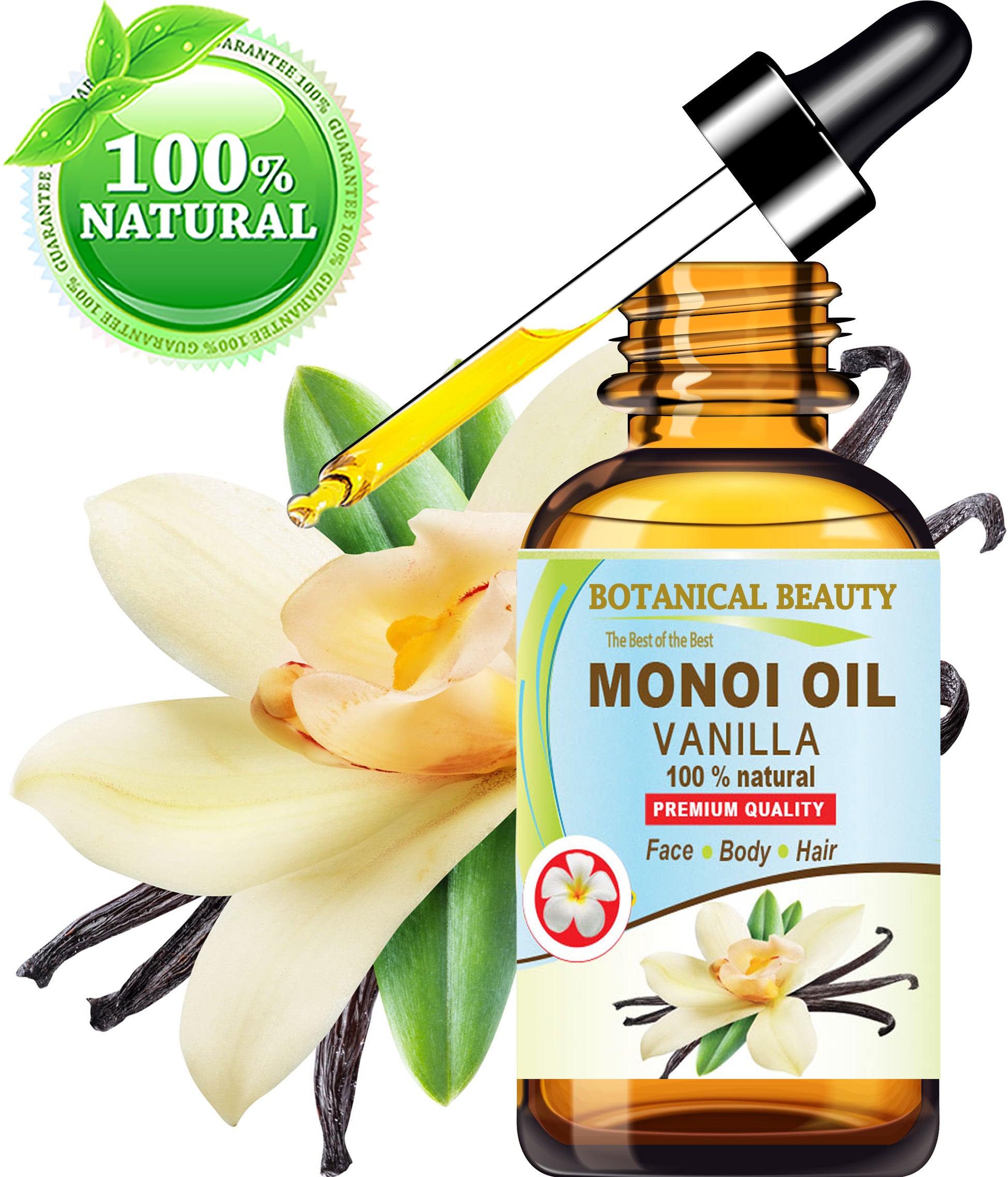 - El ACEITE DE MONOI Vainilla de Botanical Beauty se considera uno de los aceites más extraordinarios para el rostro, la piel, el cuerpo, el cabello y las uñas con flores de Tiaré infundidas en aceite de Cocos Nucifera (coco). El ACEITE DE MONOI Vainilla de Botanical Beauty tiene el aroma ligero de las flores de Monoi y Tiaré (Frangipani) y la vainilla.