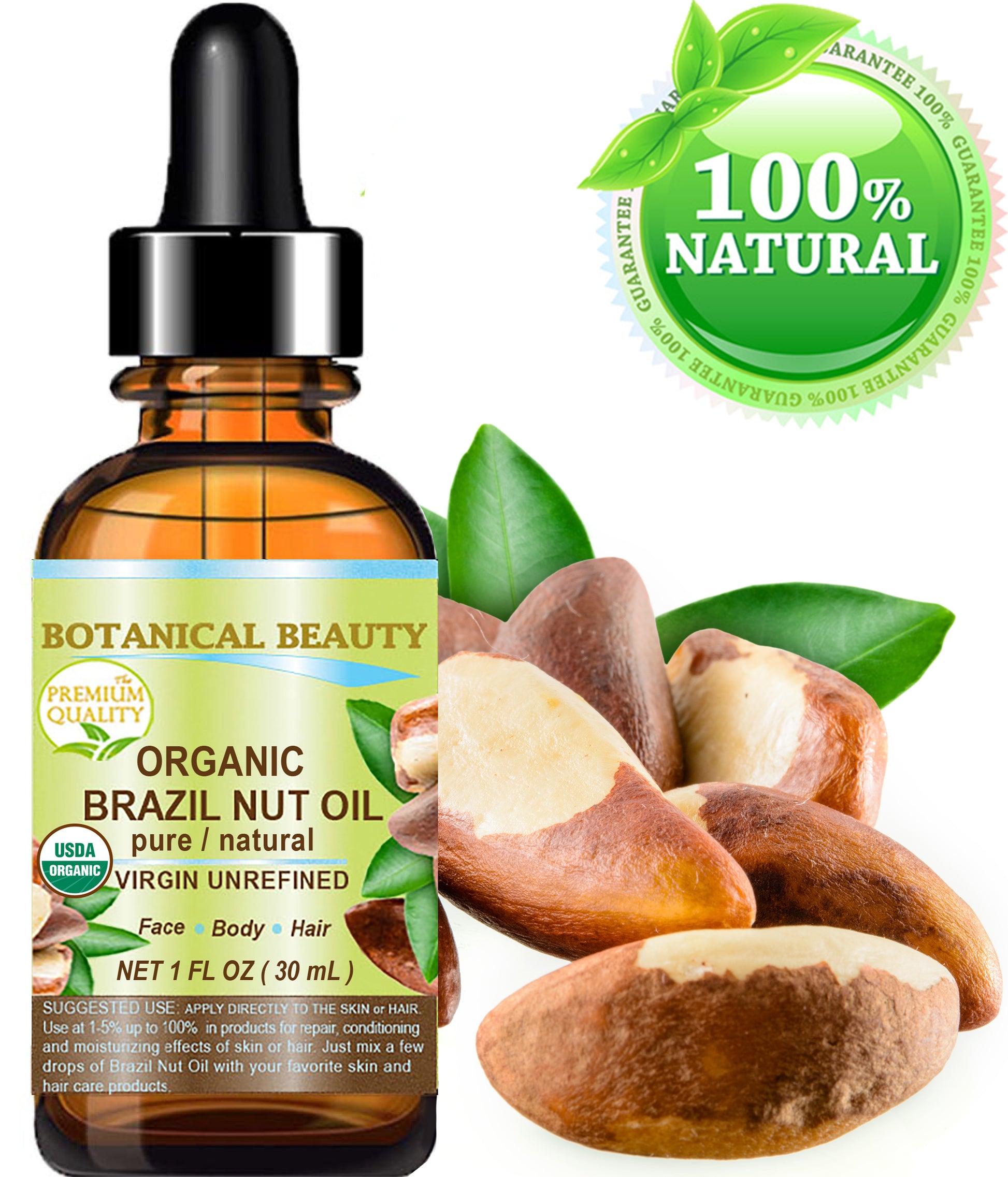 Aceite de nuez de Brasil orgánico certificado por Botanical Beauty, aceite portador puro natural virgen sin refinar prensado en frío para el cuidado de la piel, el rostro, el cabello, los labios, las uñas y los pies.