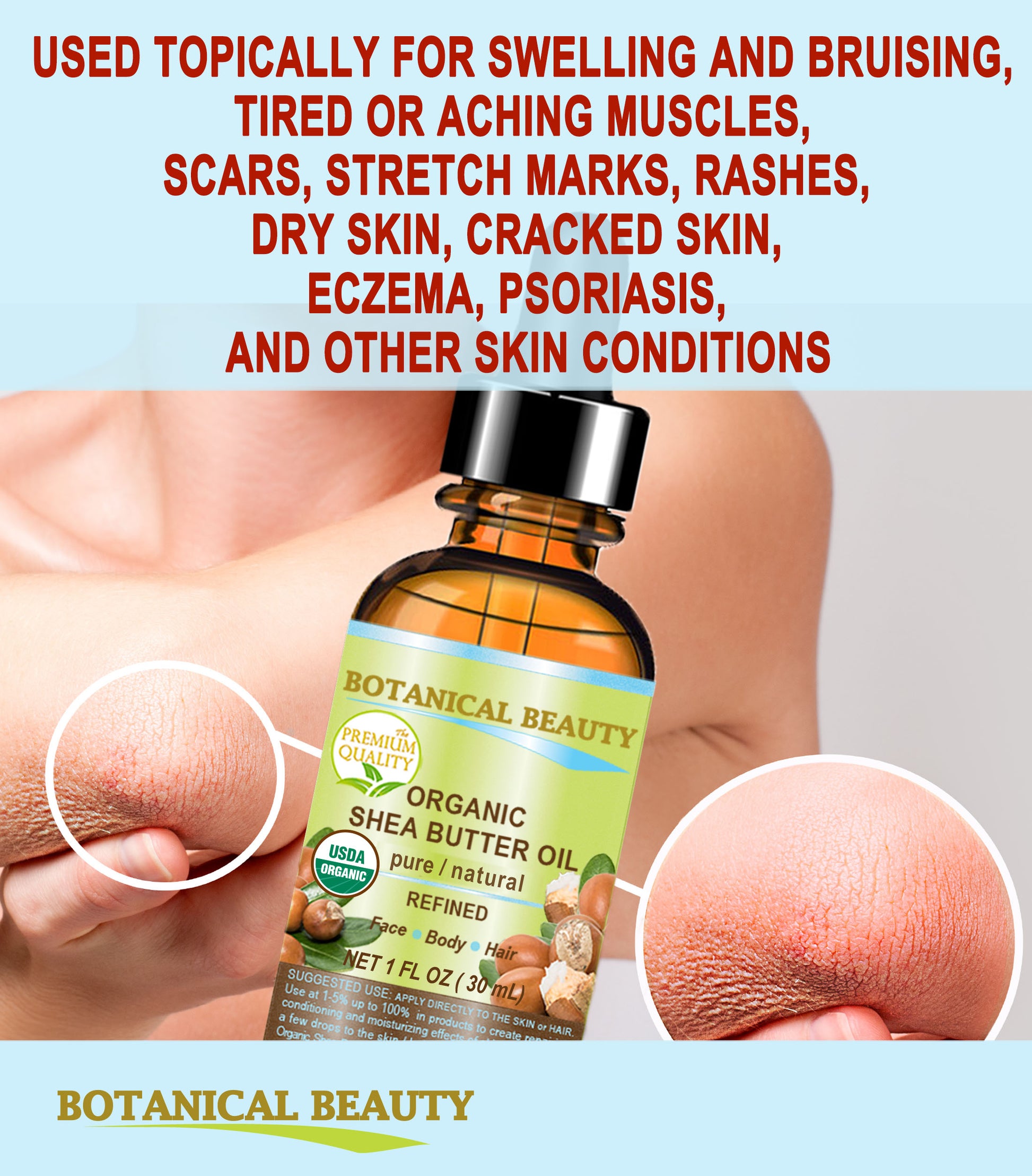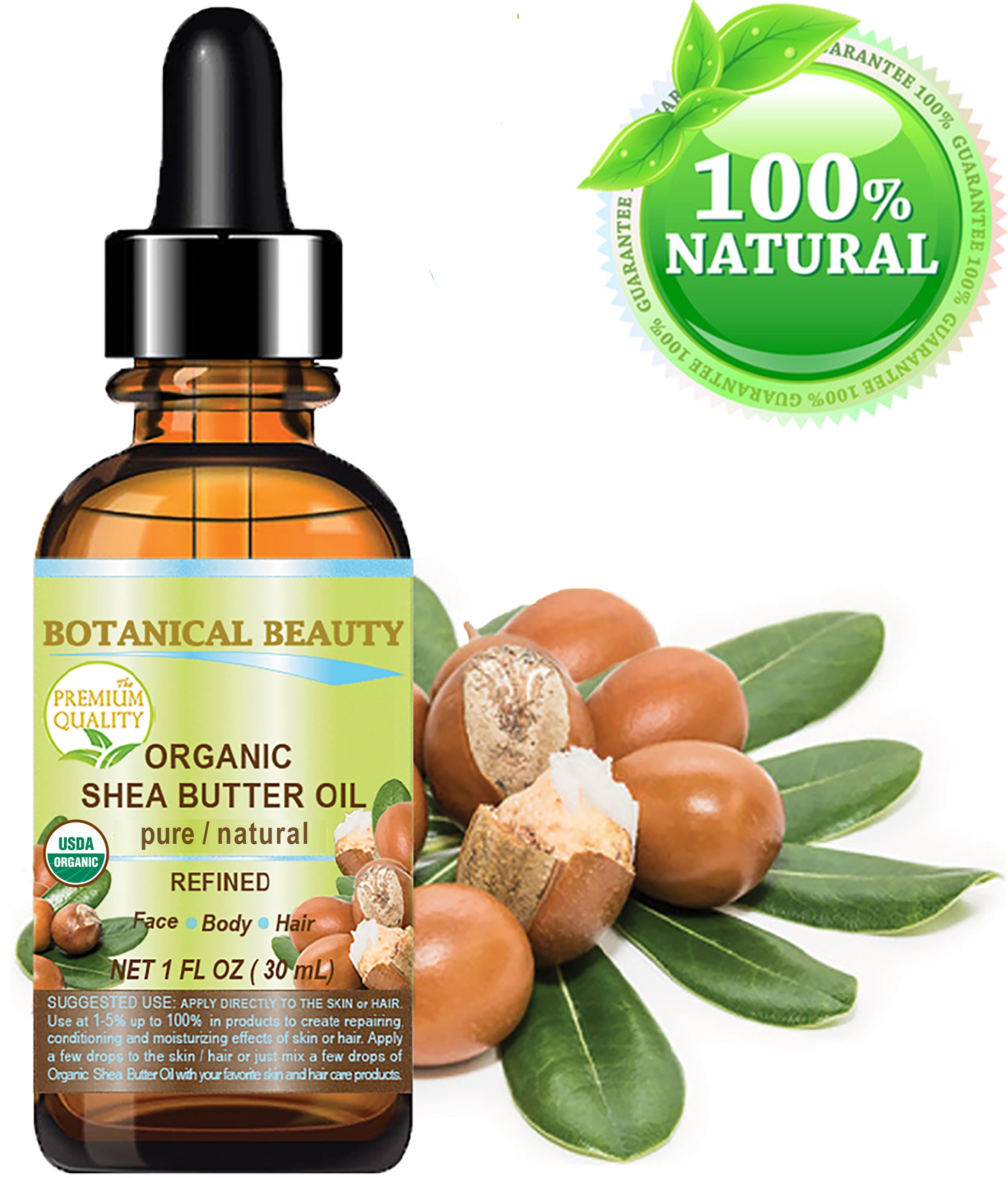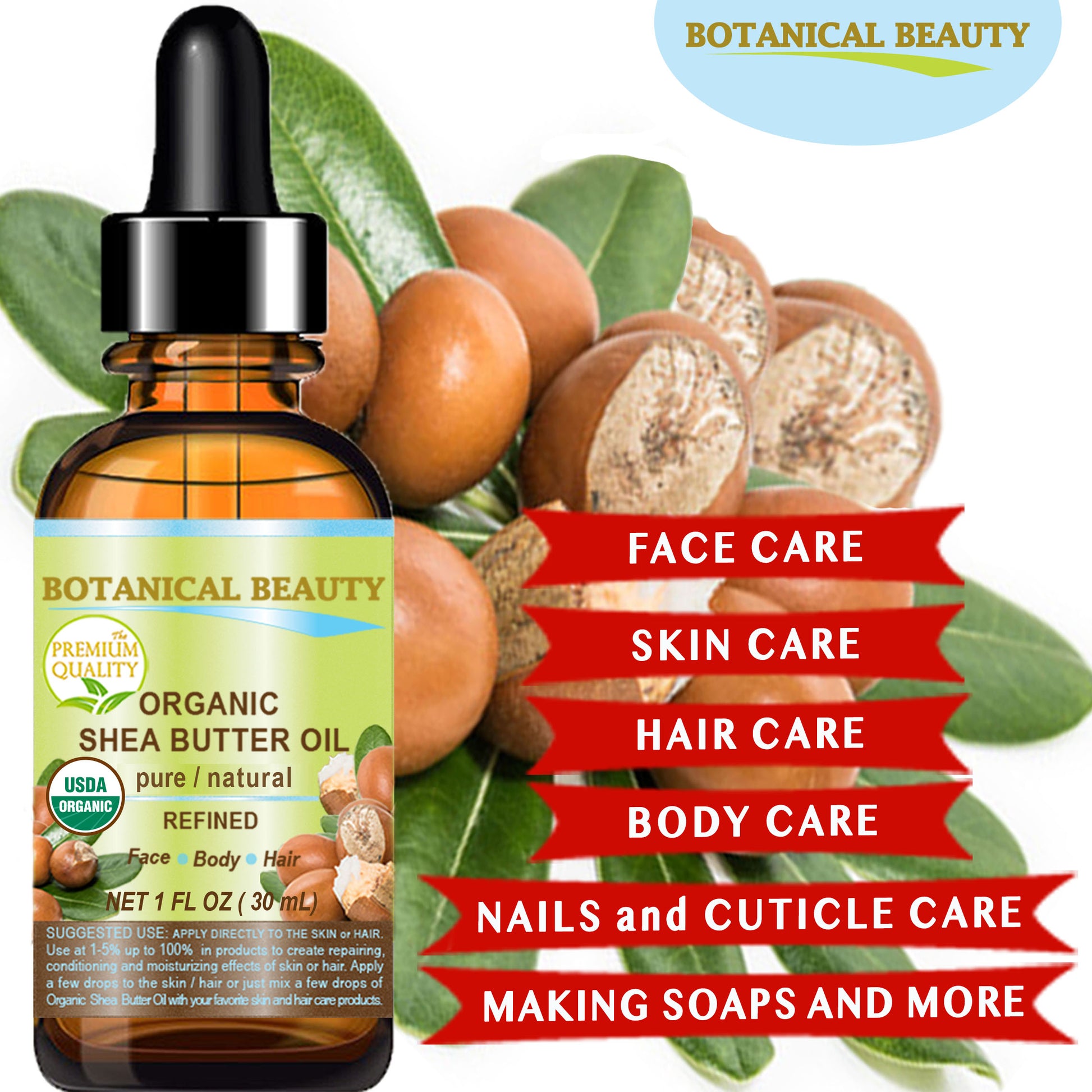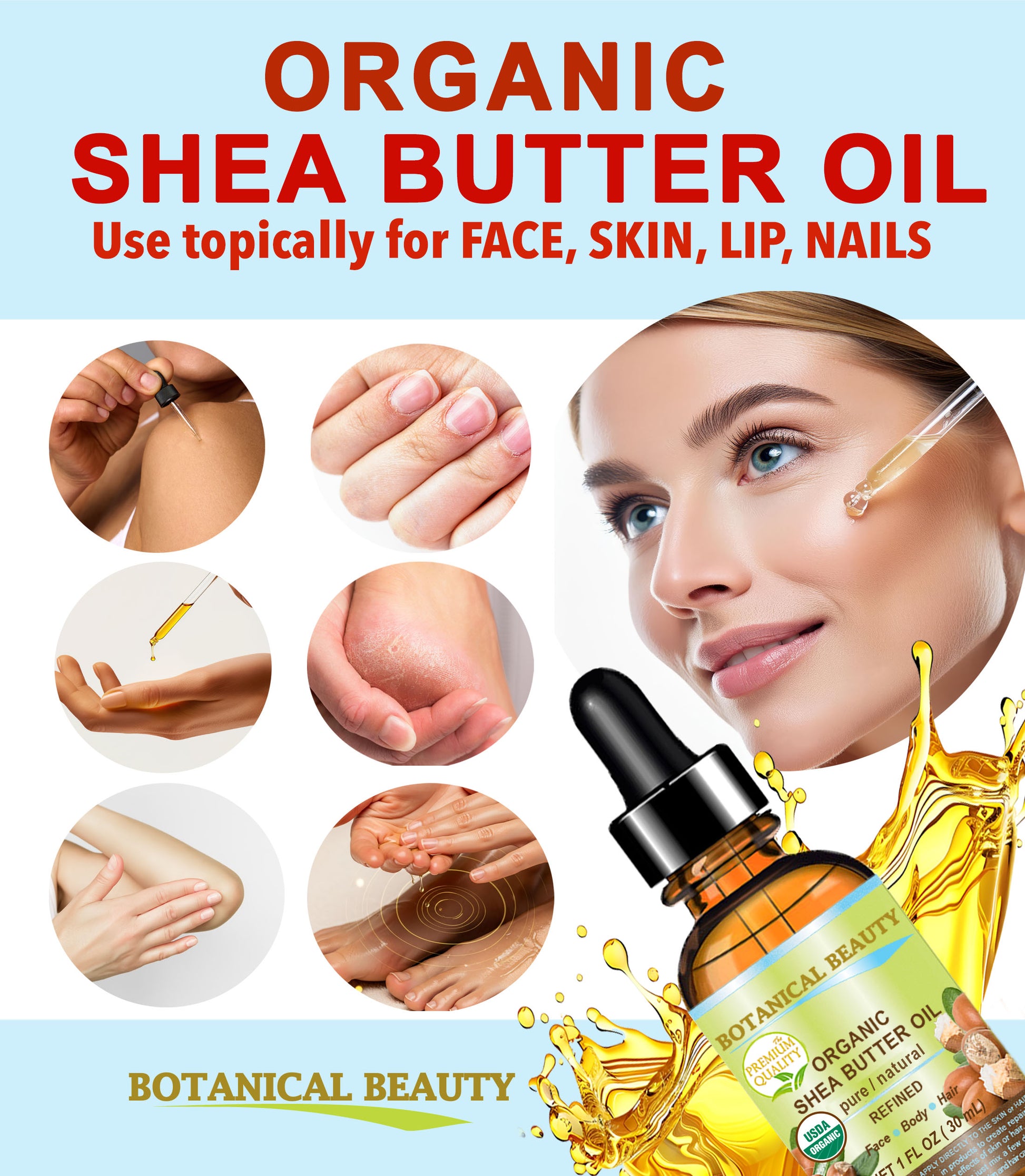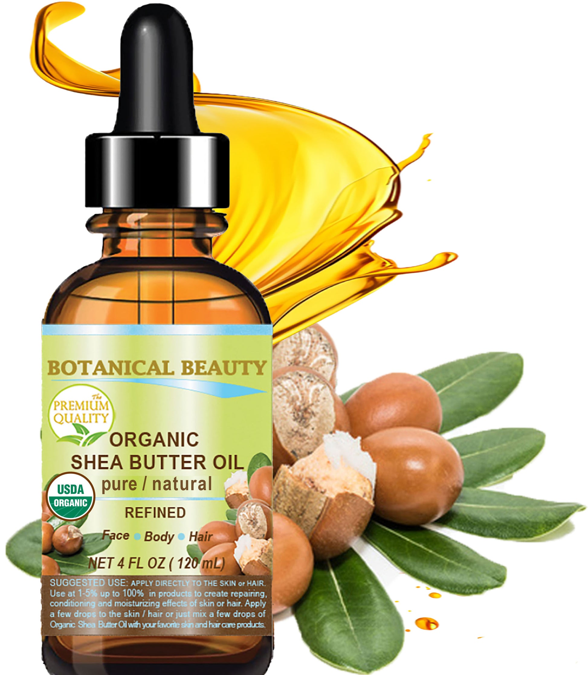 Aceite de manteca de karité orgánico certificado Botanical Beauty, puro, natural, sin diluir, refinado, prensado en frío, aceite portador para rostro, piel, cabello, cuerpo, labios y uñas