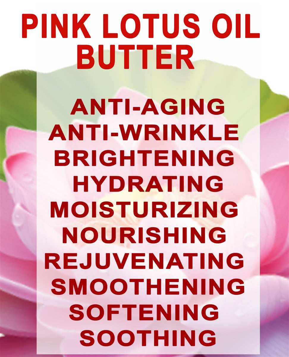 - La MANTECA DE ACEITE DE LOTO ROSA se usa para el cuidado del rostro, la piel, el cabello, el cuero cabelludo, los labios y las uñas, como aceite de masaje o de baño. Es la manteca de aceite humectante natural perfecta para la piel. Una pequeña cantidad rinde mucho, se absorbe rápidamente, no es grasosa, no se ha probado en animales y no contiene conservantes.