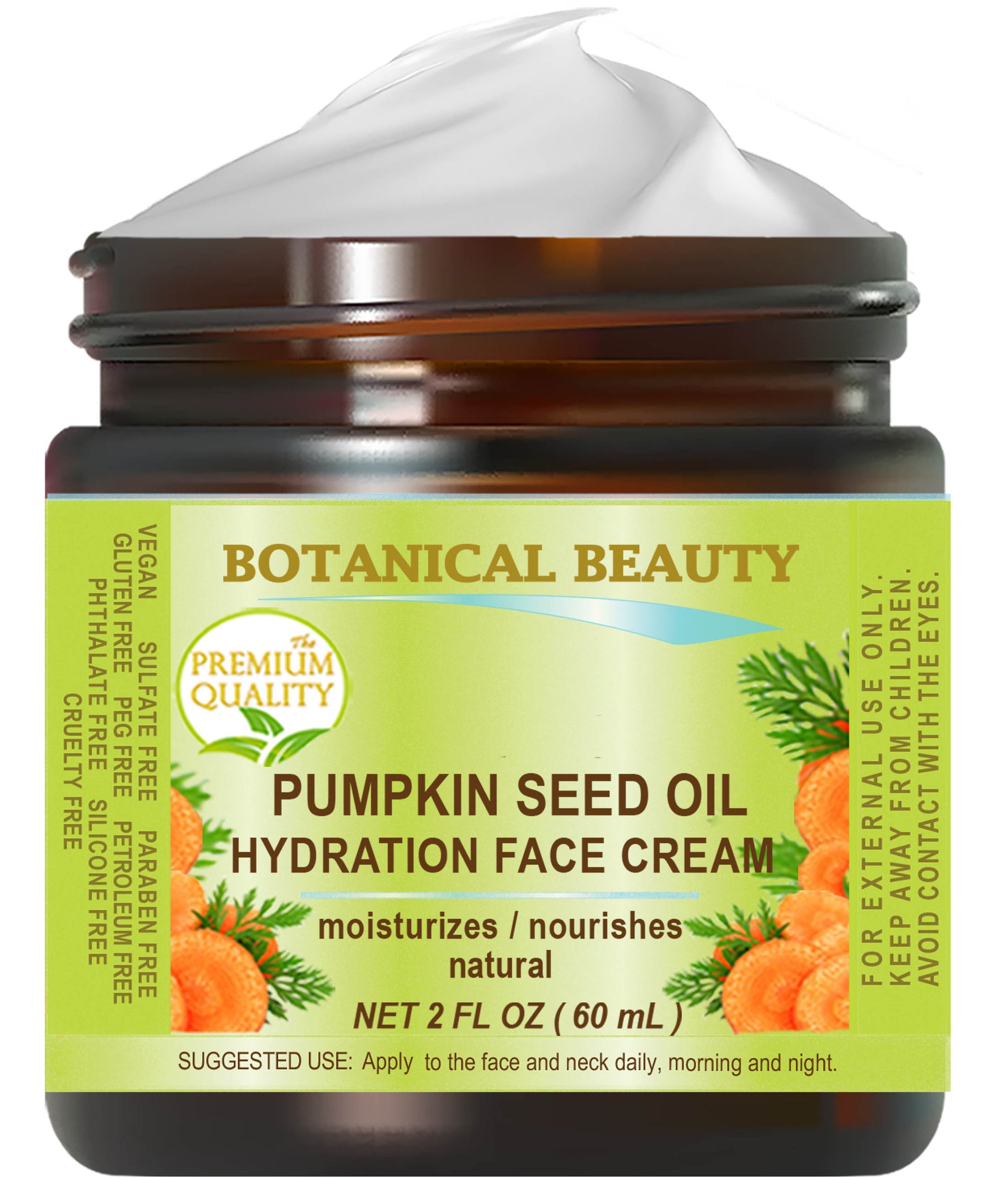 Crema facial hidratante con aceite de semilla de calabaza Botanical Beauty para pieles normales, secas y sensibles y para rostro, piel, cuerpo, cabello, labios y uñas.