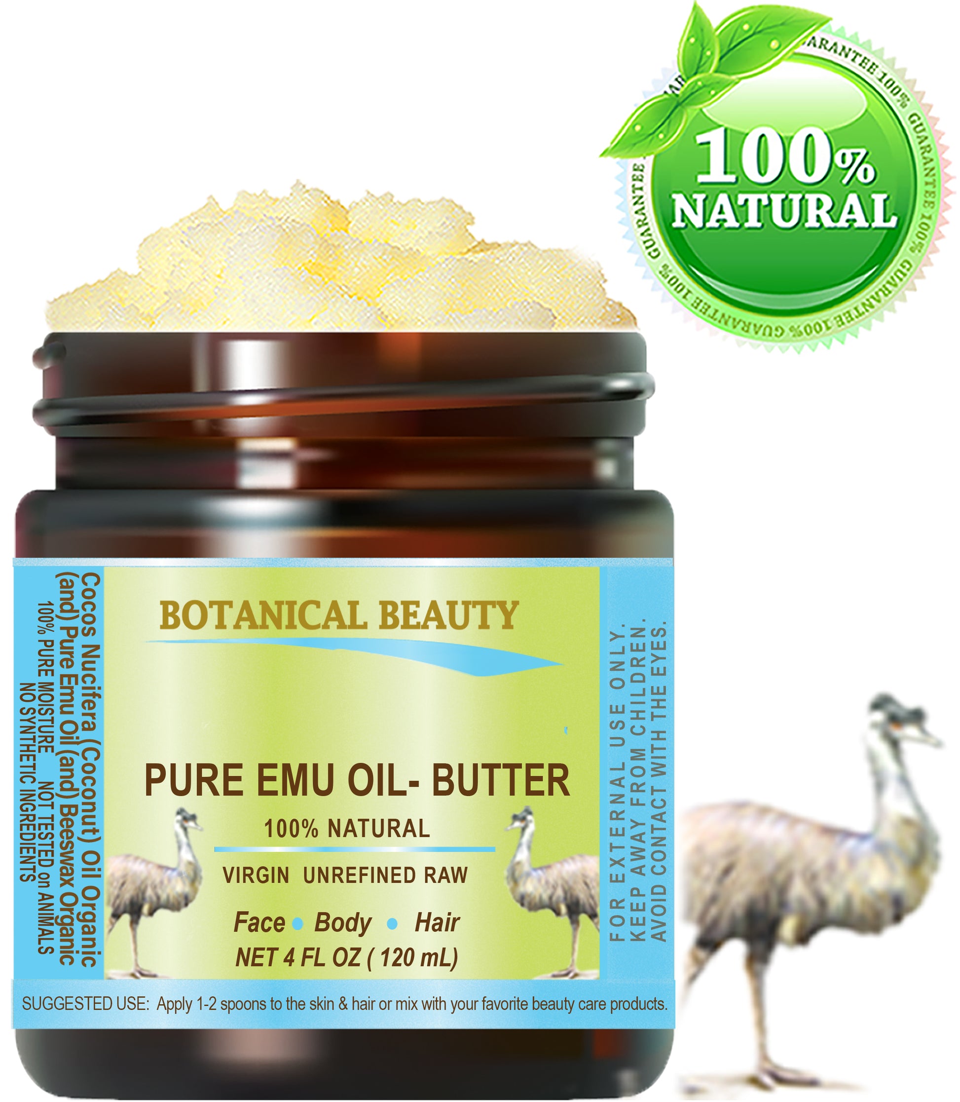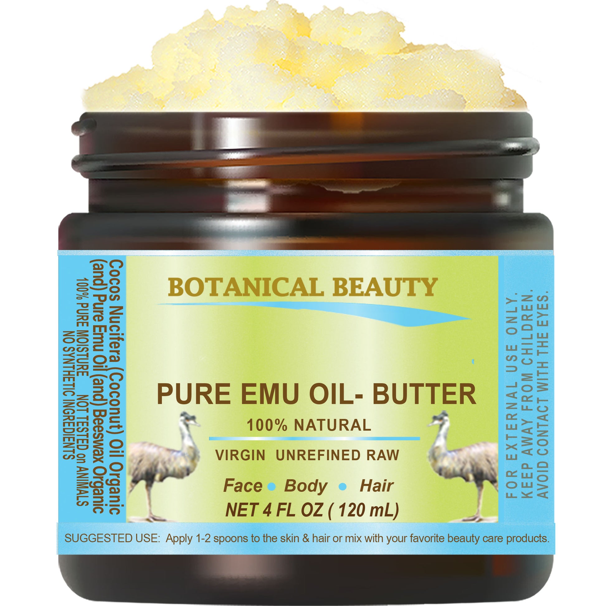 Mantequilla de aceite de emú puro Botanical Beauty 100 % natural, VIRGEN CRUDO SIN REFINAR para el CUIDADO DEL ROSTRO, CUERPO, MANOS, PIES, UÑAS, CABELLO y LABIOS.