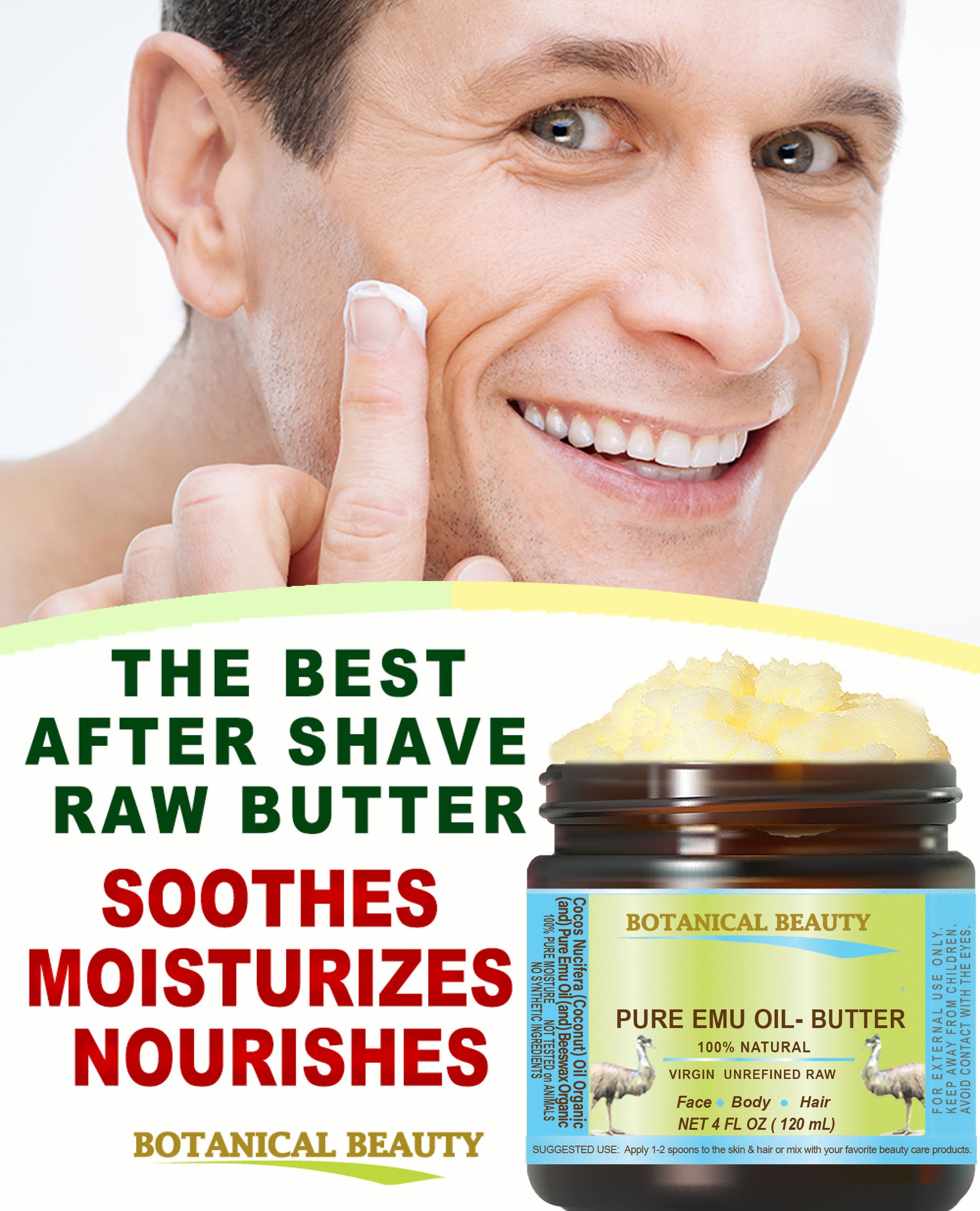 - La MANTEQUILLA DE ACEITE DE EMÚ PURO ayuda a tratar la piel dañada como QUEMADURAS, HERIDAS, CORTES, CICATRICES, PICAZÓN, ESCAMOSA E IRRITADA, COMO ECZEMA Y PSORIASIS.
