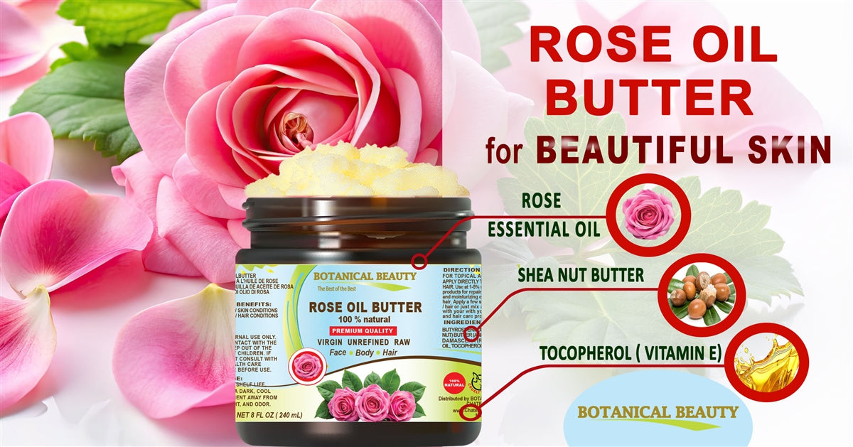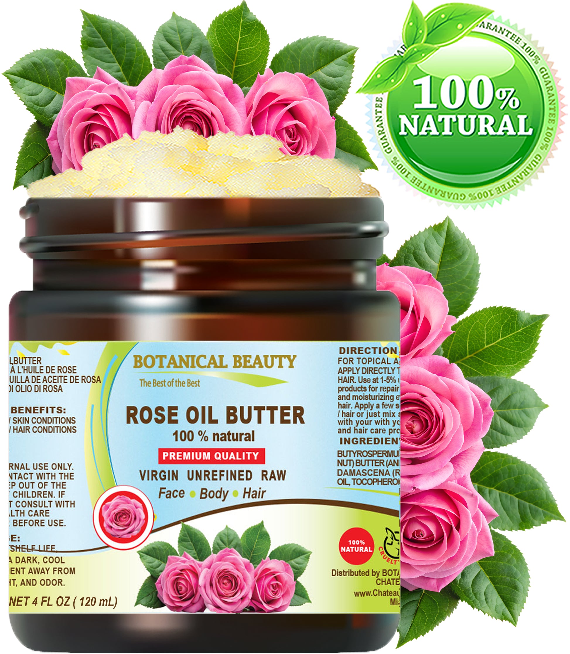 - La MANTECA DE ACEITE DE ROSA de Botanical Beauty es una infusión de aceite esencial de rosa (Rosa damascena) en manteca de karité (Butyrospermum parkii), manteca virgen sin refinar 100 % natural, prensada en frío y sin refinar. La MANTECA DE ACEITE DE ROSA de Botanical Beauty tiene el aroma celestial y ligero de las flores de rosa. También se conoce comúnmente como rosa de Damasco, rosa búlgara