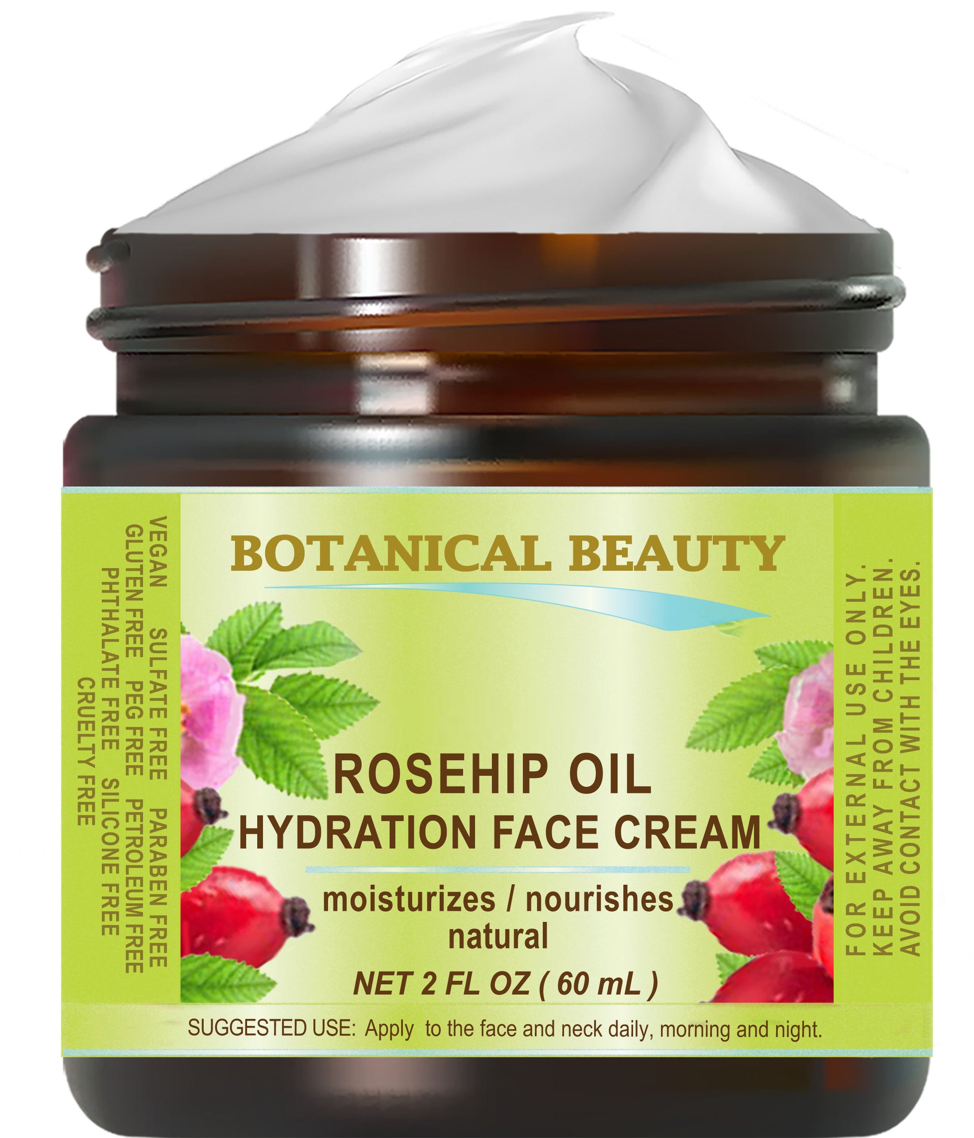 Crema facial hidratante con aceite de rosa mosqueta Botanical Beauty para pieles normales, secas y sensibles, para rostro, piel, cuerpo, labios, cabello y uñas.