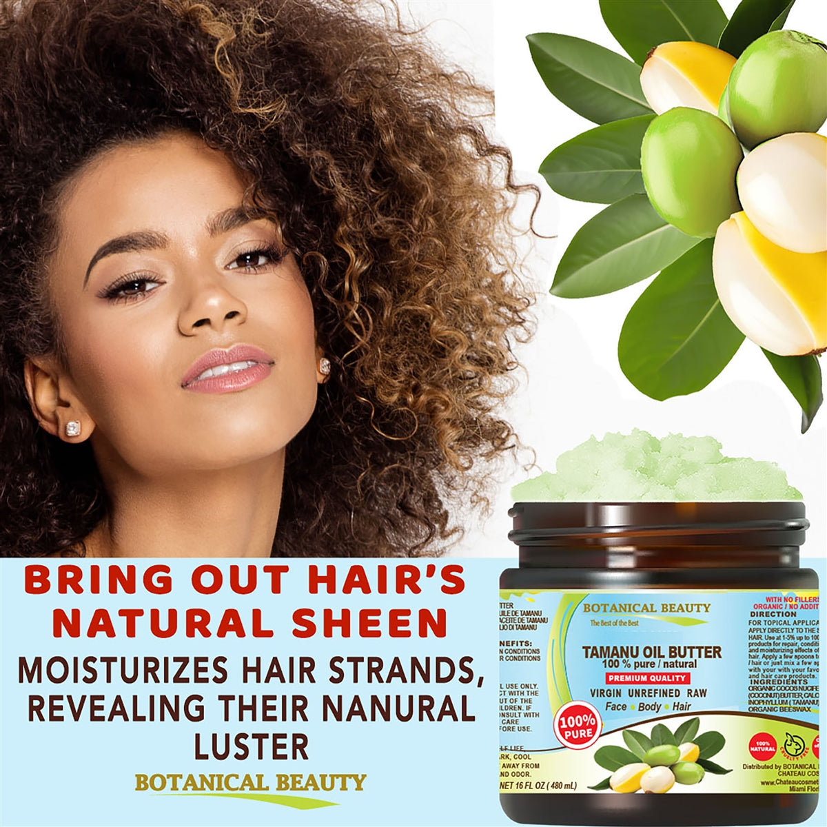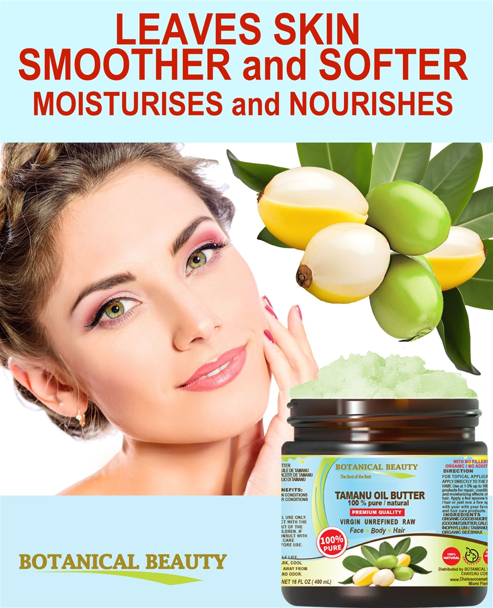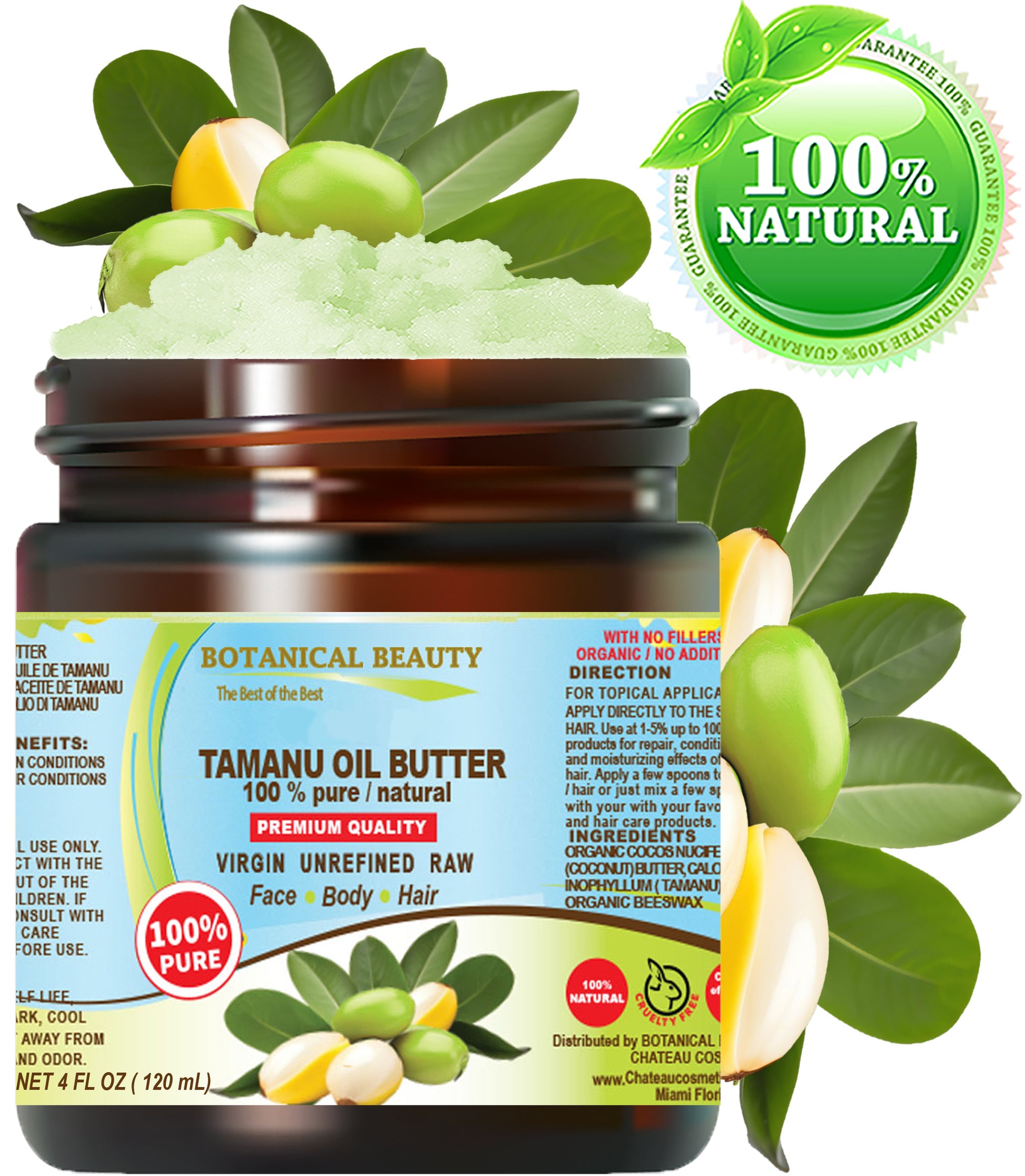 Mantequilla de aceite de tamanu de Botanical Beauty 100 % pura, natural, de primera calidad, virgen sin refinar, cruda para rostro, cuerpo, cabello, labios y uñas.