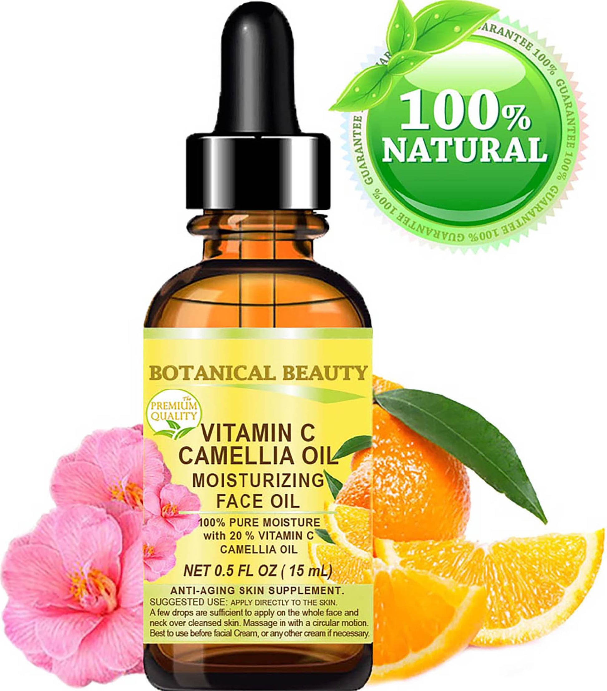 Aceite facial de camelia con 20 % de vitamina C de Botanical Beauty, antienvejecimiento, hidratante, regenerador y nutritivo para rostro, piel, cuerpo, cabello y uñas.