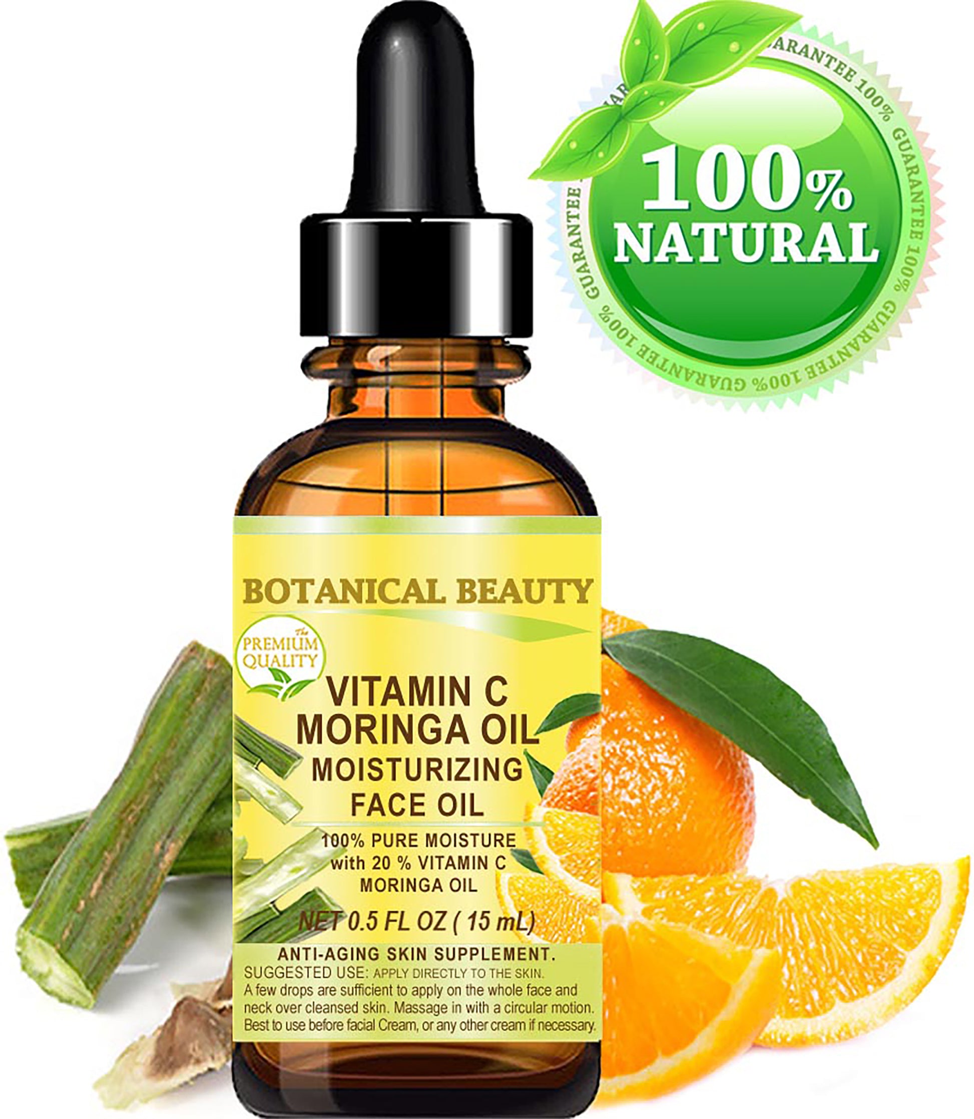 - El aceite facial de moringa con vitamina C al 20 % es uno de los mejores humectantes antienvejecimiento. No exfolia ni irrita la piel. No contiene conservantes. 100 % de garantía de satisfacción de Botanical Beauty.