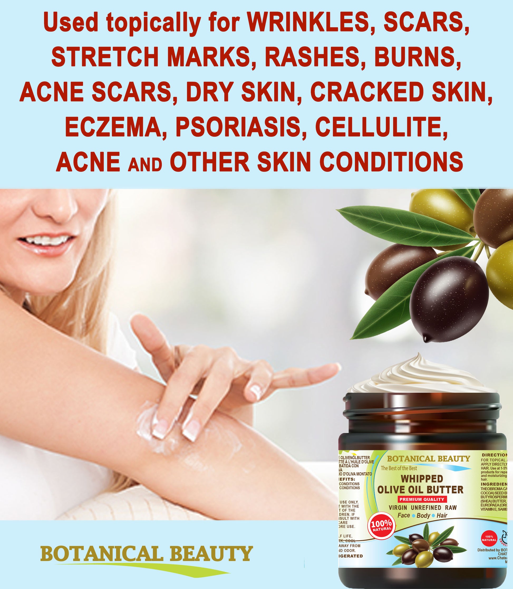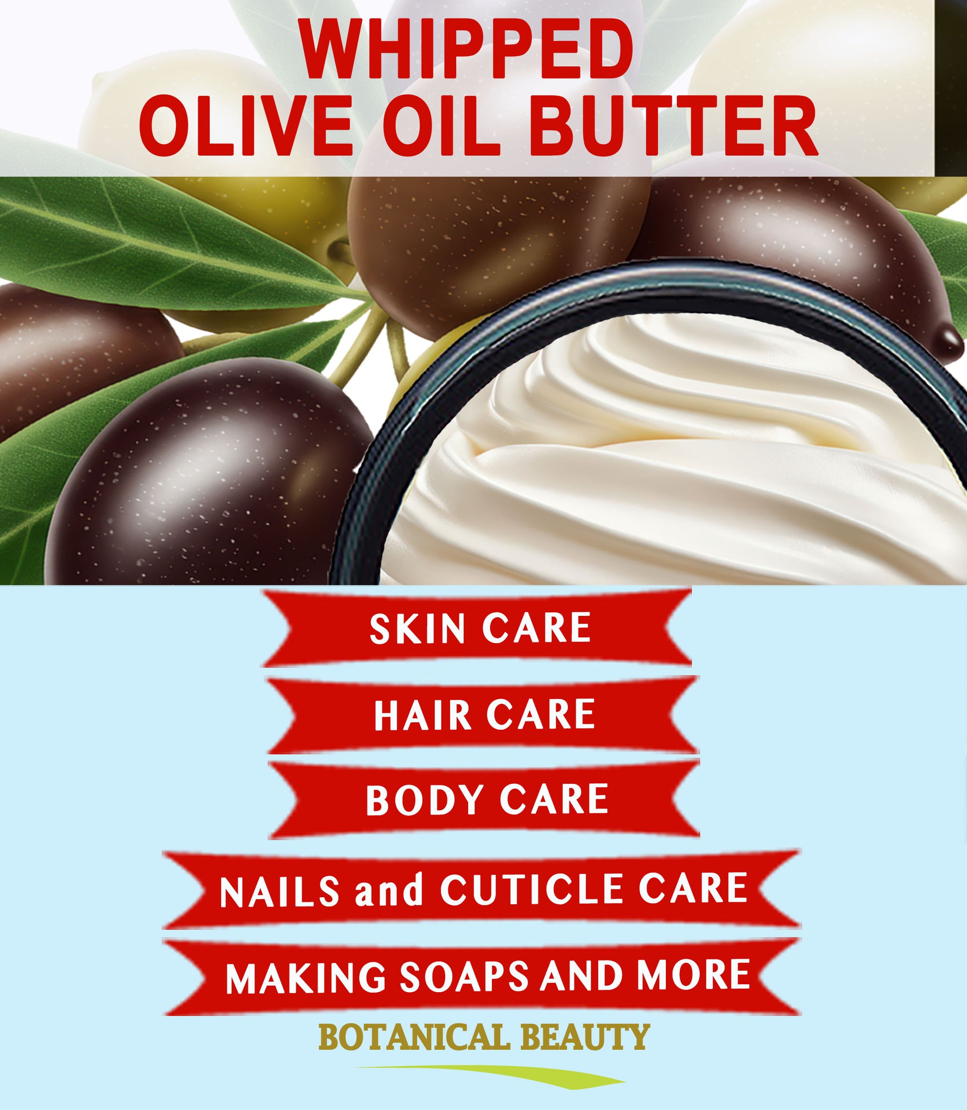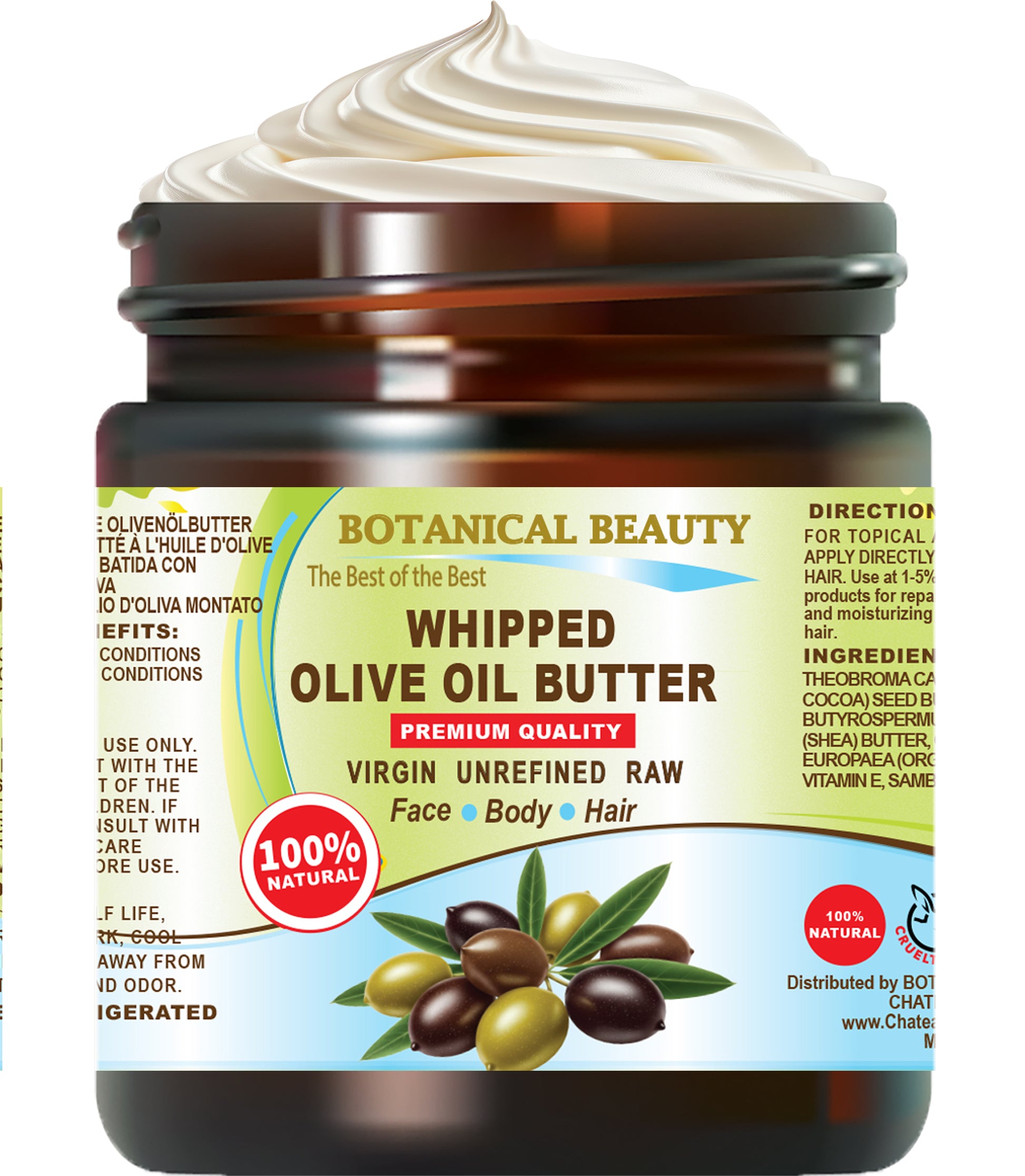 NEW! Botanical Beauty Whipped OLIVE OIL BUTTER 100% Natural Pure Vegan Unrefined Cold-Pressed RAW for FACE, SKIN, BODY, HAIR, LIP, NAILS.