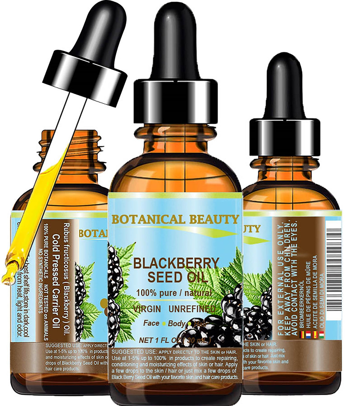 Botanical Beauty Blackberry Seed Oil Virgin Unrefined 100% Pure Natural Cold Pressed Undiluted Carrier Oil for Face, Skin, Hair, Body, Lip, and Nails.
