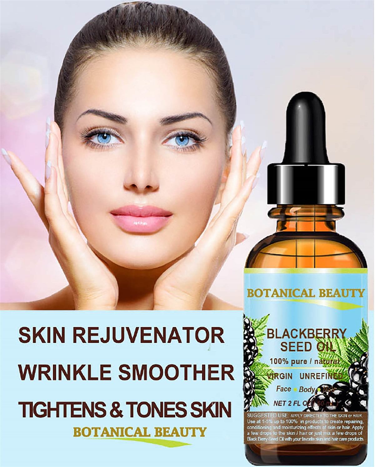 - BLACKBERRY SEED OIL also contains a significant amount of Vitamin C. Vitamin C can help combat wrinkles, blotches, large pores, acne, and other skin blemishes.