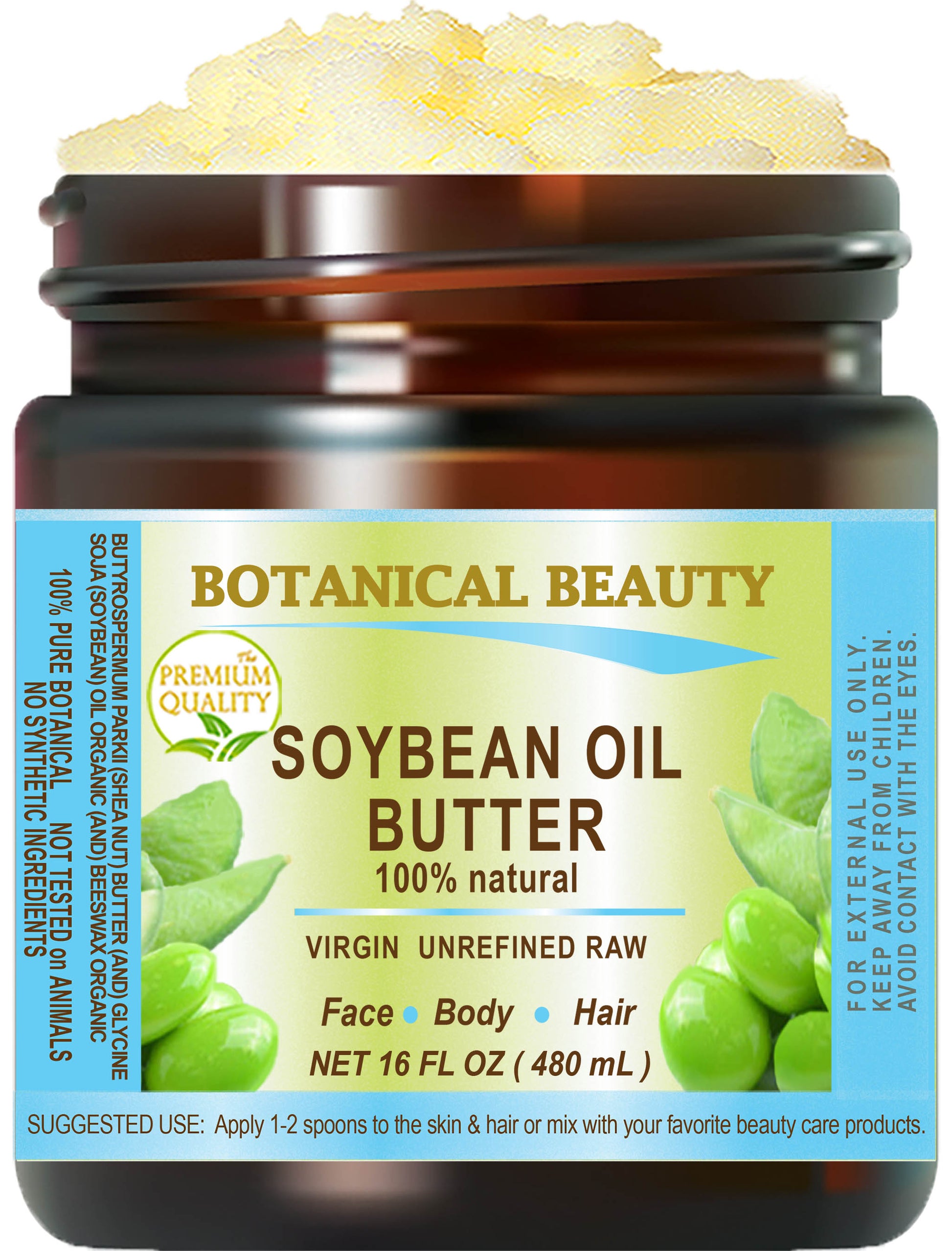 - Botanical Beauty SOYBEAN OIL BUTTER is Organic Soybean Oil infusion in Shea Nut Butter ( Butyrospermum Parkii) 100% Natural RAW cold-pressed virgin unrefined Butter. Organic SOYBEAN OIL is high in alpha-linolenic acid, oleic acid, linoleic, and palmitic acids, lecithin, vitamin E, omega 3. SHEA BUTTER derived from the shea tree, is rich in fatty acids like linoleic, palmitic, stearic, and oleic and vitamin A, vitamin E, vitamin F.